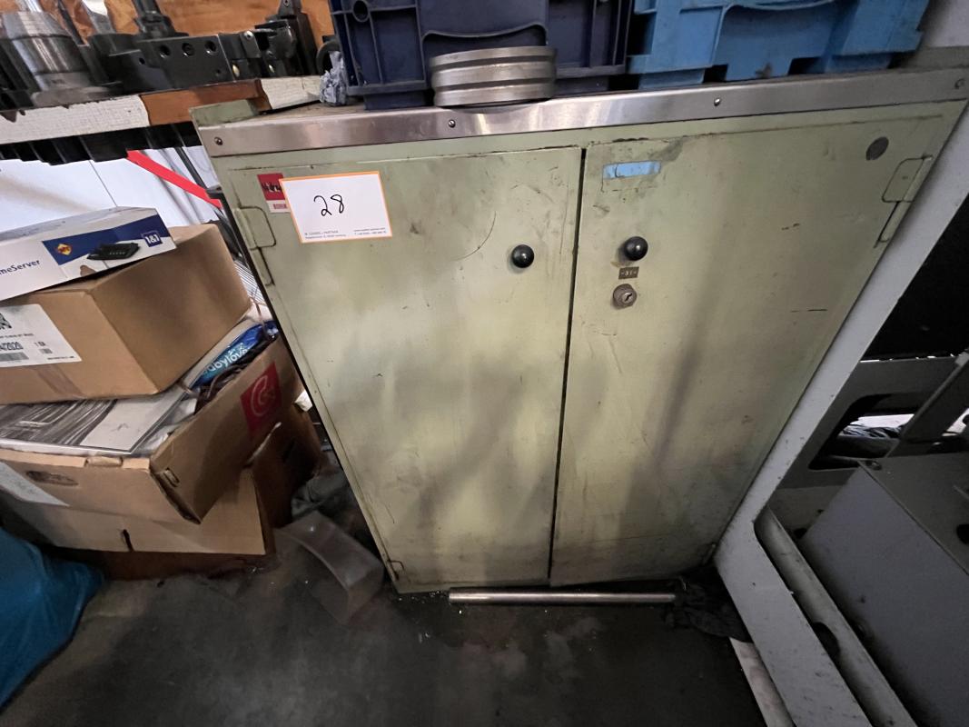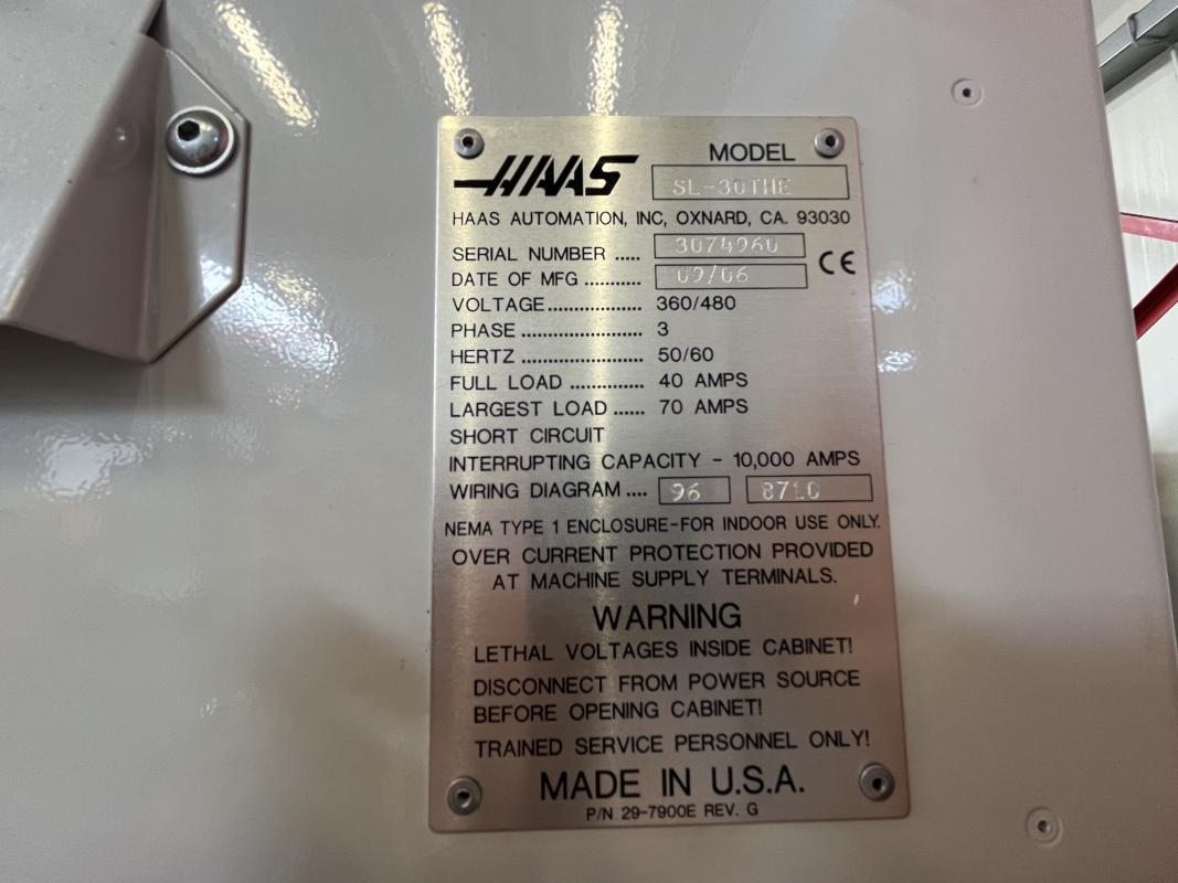 Fabrikat: HAAS, Typ: SL-30THE, Baujahr: 2006, Ser.-Nr. 3074960, Steuerung, Fabr. Haas, Verfahrwege X/Z 287 x 864 mm, Spindeldrehzahl 3.400 U/min, 12-facher Werkzeugrevolver, Werkzeugaufnahme VDI40, Spanndurchlass 76 mm, Reitstock, 3-Backen-Futter, Kühlmitteleinrichtung, Späneförderer, Zubehör: Stahlblechschlagschrank, 2-türig, Inhalt: Abstandshalter, ca. 24 Werkzeugaufnahmen, Werkbank, 9 Auszüge