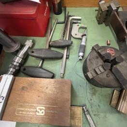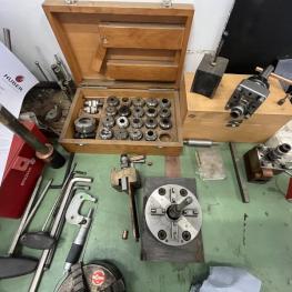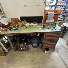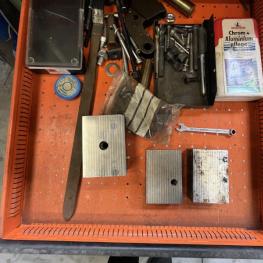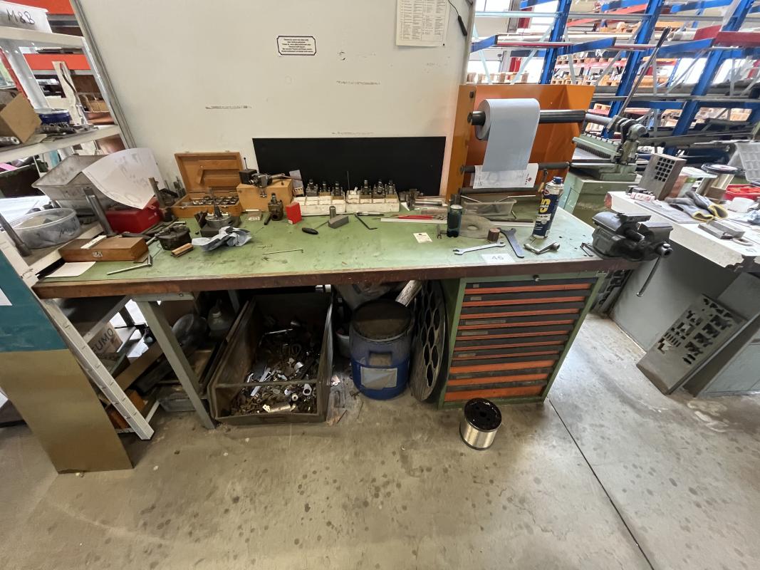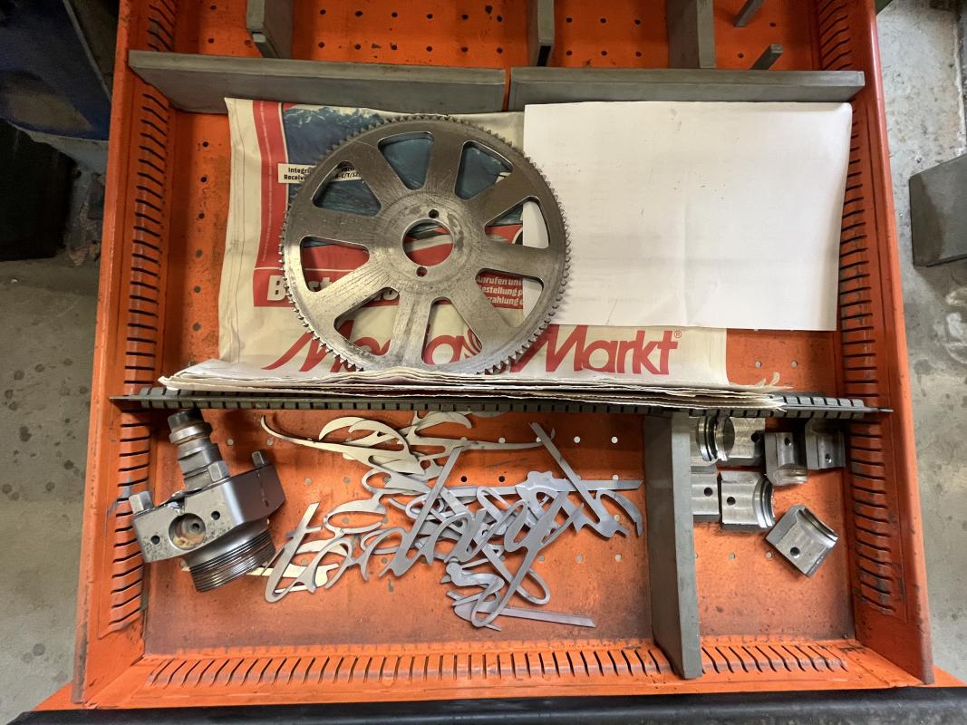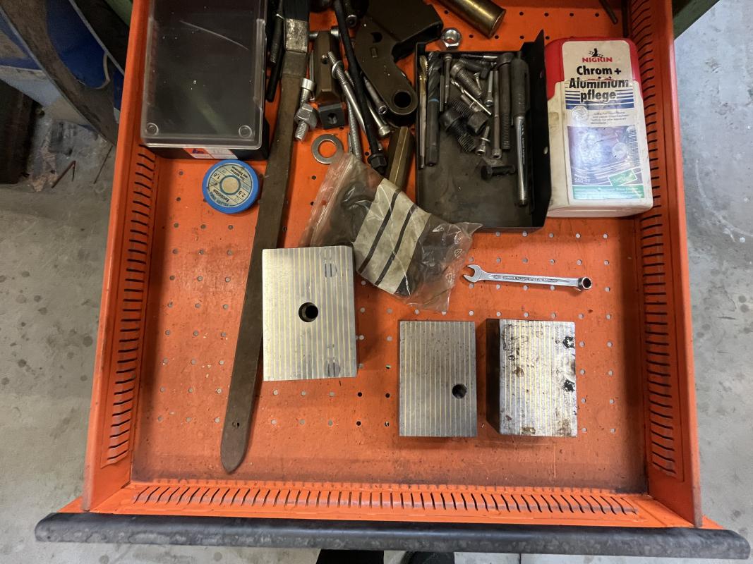 Auszüge, Schraubstock, Inhalt: div. Schrankzangen, ca. 12 Elektrodenhalter, Messmittel