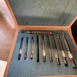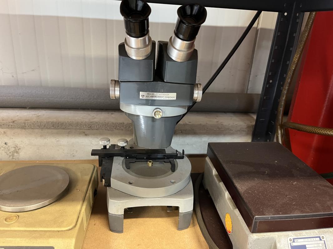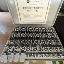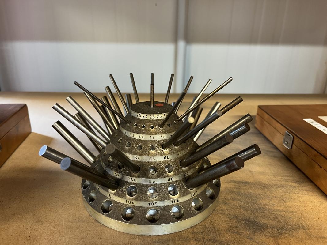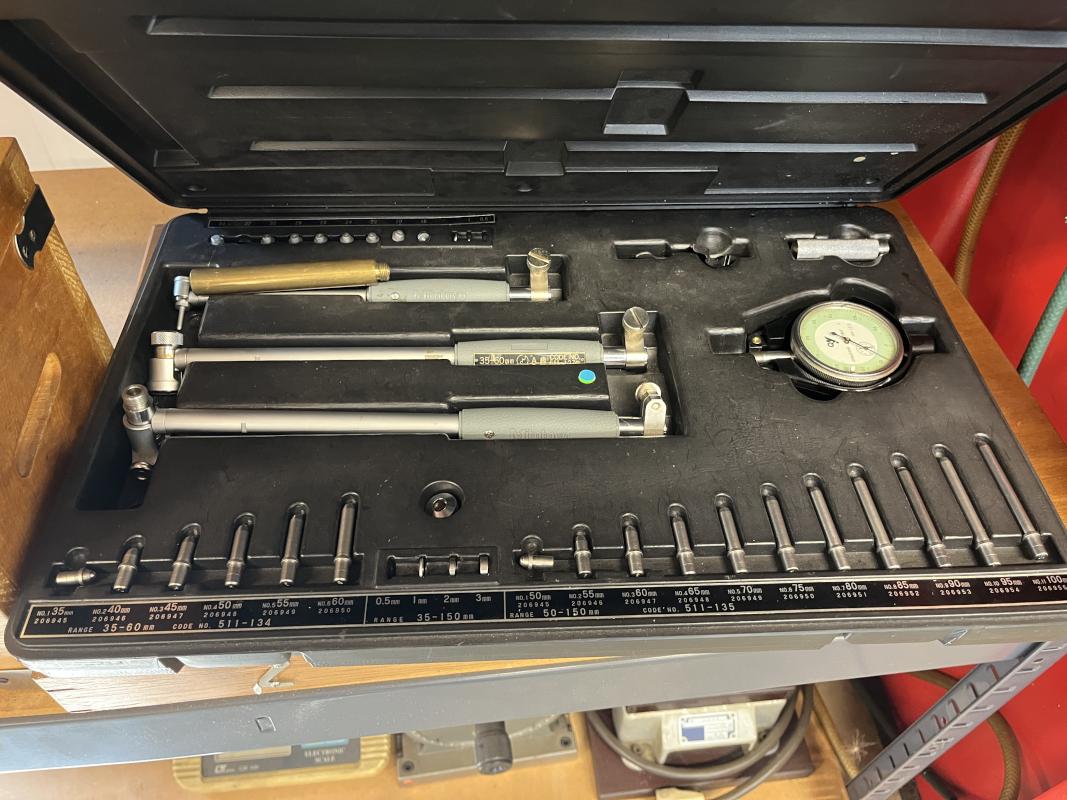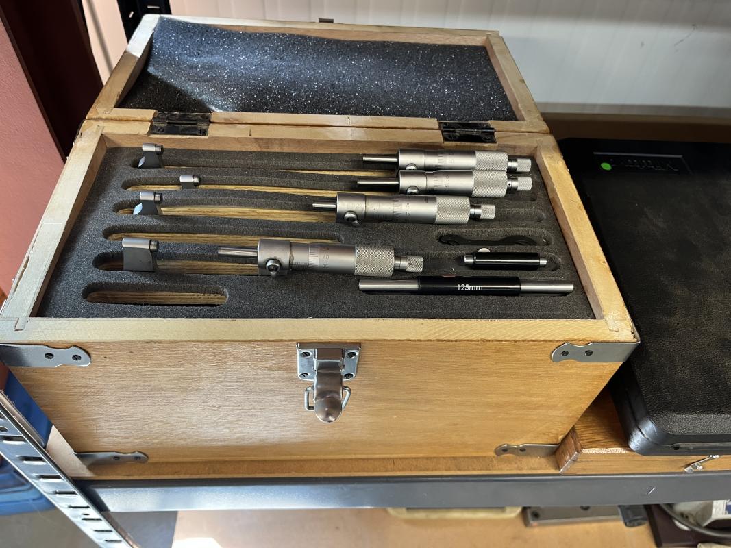 best. aus: Metallsteckregal, Gewinde-Lehrdorne, Präzisionsmesskugeln, Fabr. Sartorius, Wasserwaage, Fabr. C. Stiefelmeyer KG, Feintaster, Innenmessschraube, Messring, Satz Mikrometer, 2-Punkt-Innenmessgerät, Fabr. Mitutoyo, Außenmikrometer, Fabr. Mitutoyo, Winkelmesstisch, Fabr. Miller, Feinwaage, Fabr. Blutron, Typ GM-500, Mikroskop, Fabr. AO Instrument Company, Typ 570, Entmagnetisierungsplatte, Typ 35136-20B1, 220 V