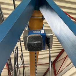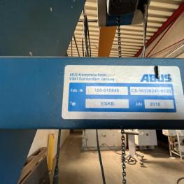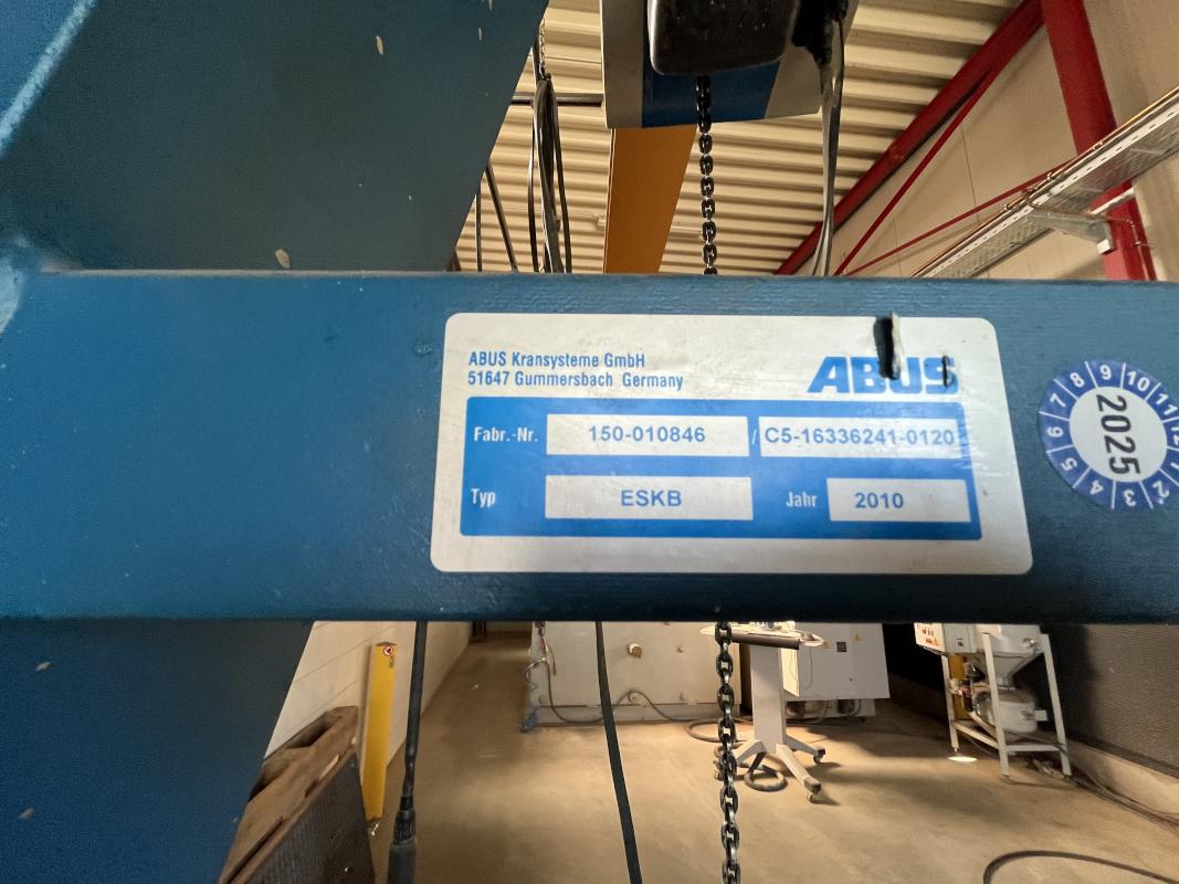 Fabrikat: ABUS, Typ: BSKB, Baujahr: 2010, Ser.-Nr. 150-010846/C5-16336241-0120, Tragfähigkeit 1.250 kg, Laufkatze, Fabr. Abus, Krankettenschirr, Hängetaster, Spannweite ca. 8.000 mm