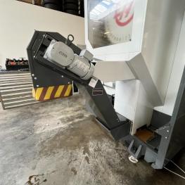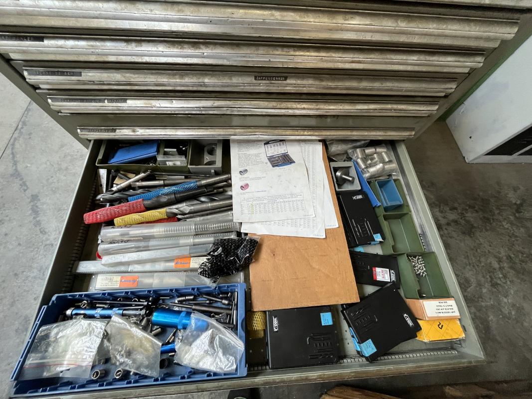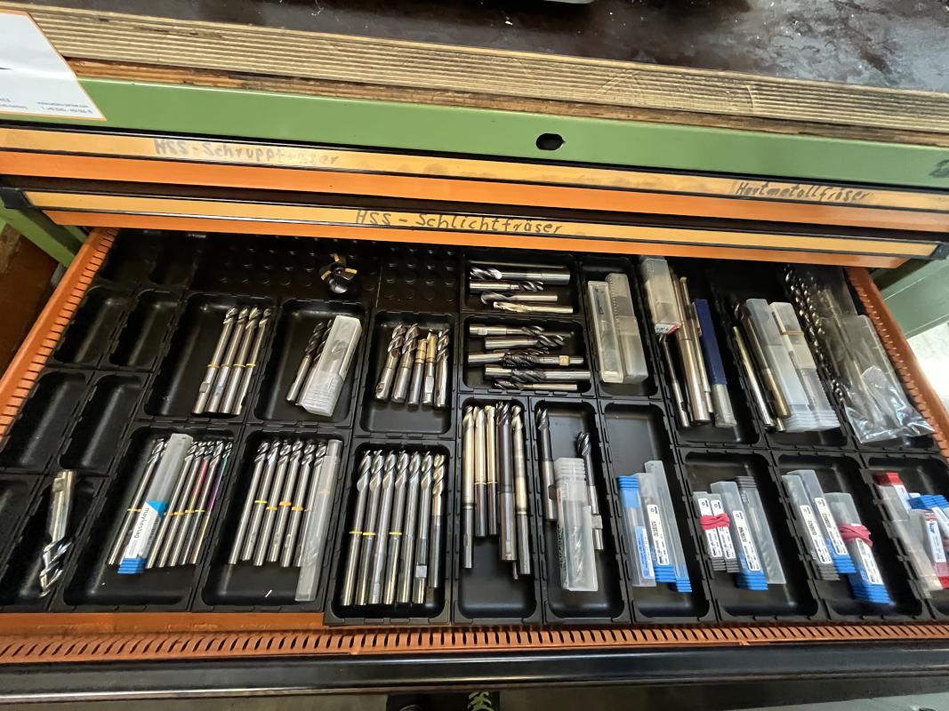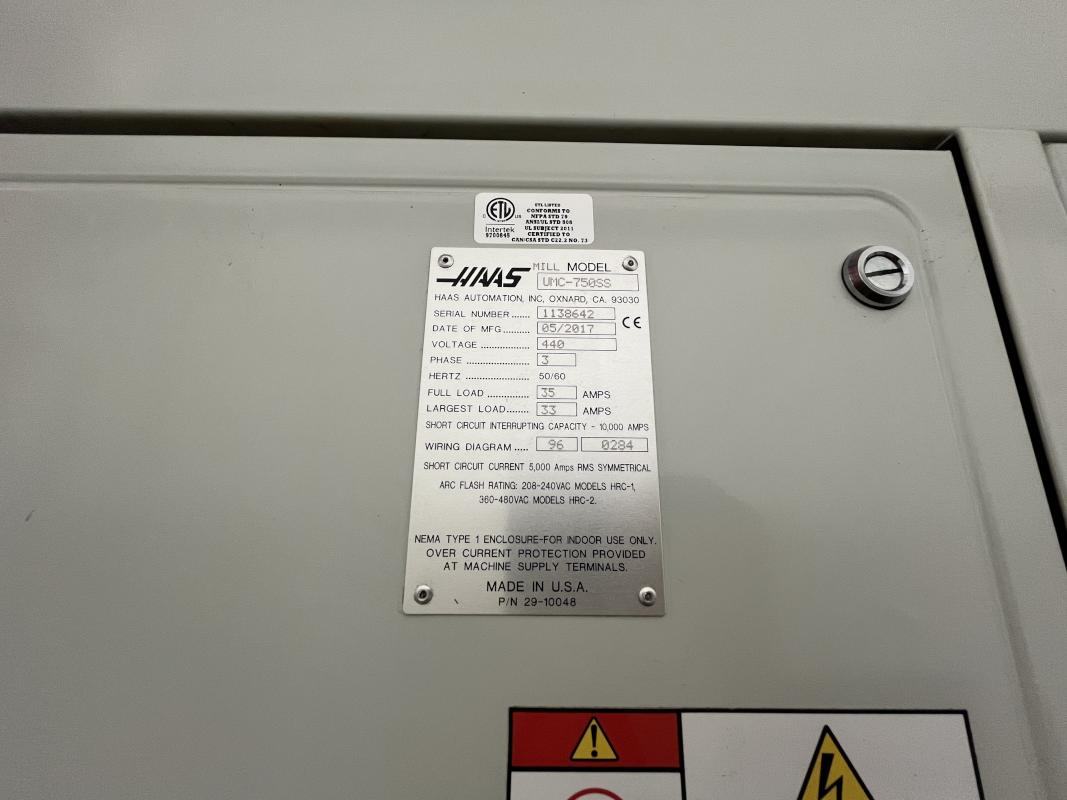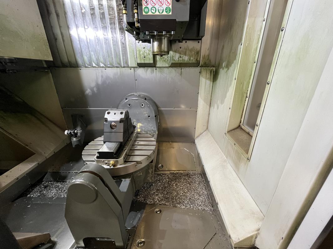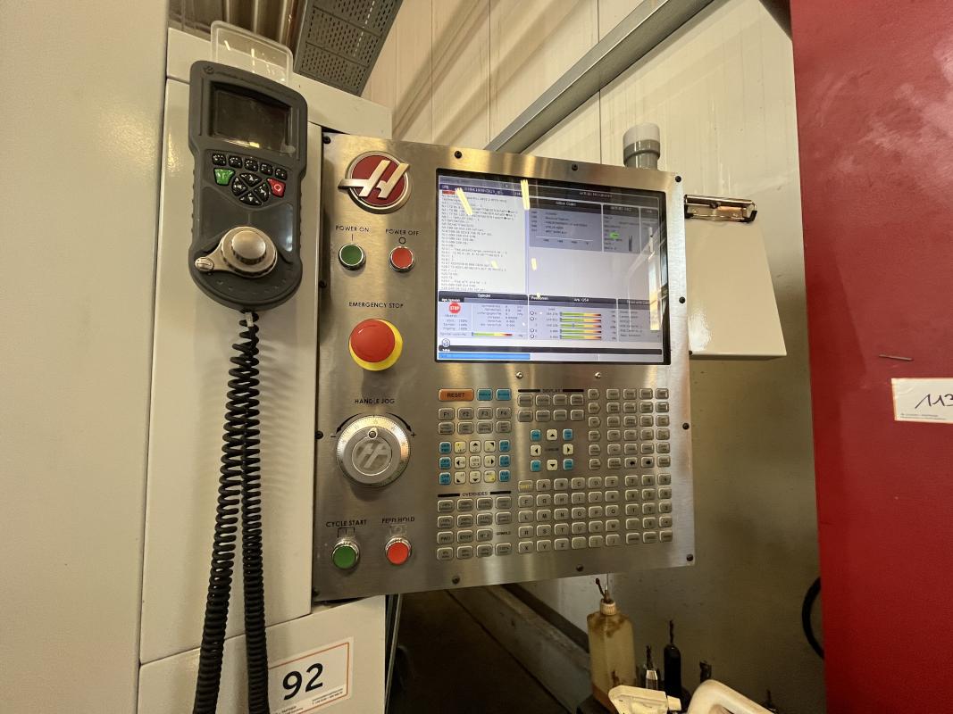 Fabrikat: HAAS, Typ: UMC 750SS, Baujahr: 2017, Ser.-Nr. 1138642, Steuerung, Fabr. Haas, Verfahrwege X/Y/Z 762 x 559 x 508 mm, C-Achse 360°, B-Achse -35 °C bis +110 °C, High-Speed-Dreh-/Schwenktisch, Ø 500 mm, Drehzahl 15.000 U/min, Inline-Direktantrieb, Eilgänge 30,5 m/min, Abstand Spindeltisch 102-610 mm, Werkzeugaufnahme SK40, 40-facher Werkzeugwechsler, Messtaster, Fabr. Renishaw, Werkzeuge- und Werkstückmesstastsystem, Späneförderer, Fabr. Henick, inerer Kühlmittelzufuhr, Zubehör: Werkbank, 6 Auszüge, Inhalt: Werkzeugaufnahmen, Schraubstock, Teleskop-Schubladenschrank, 11 Auszüge, Inhalt: Schrittfräser, Schlichtfräser, Wendeplatten, Sonderhalter, Hartmetallfräser, Maschinenschraubstock, Teleskop-Schubladenschrank, 11 Auszüge, Inhalt: Gewindebohrer, Schneideisen, Zapfensenker, div. Werkzeugaufnahmen, NC-Spanner