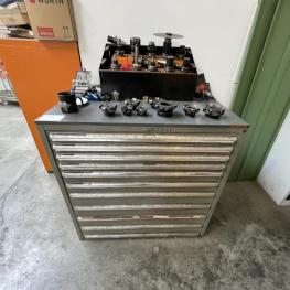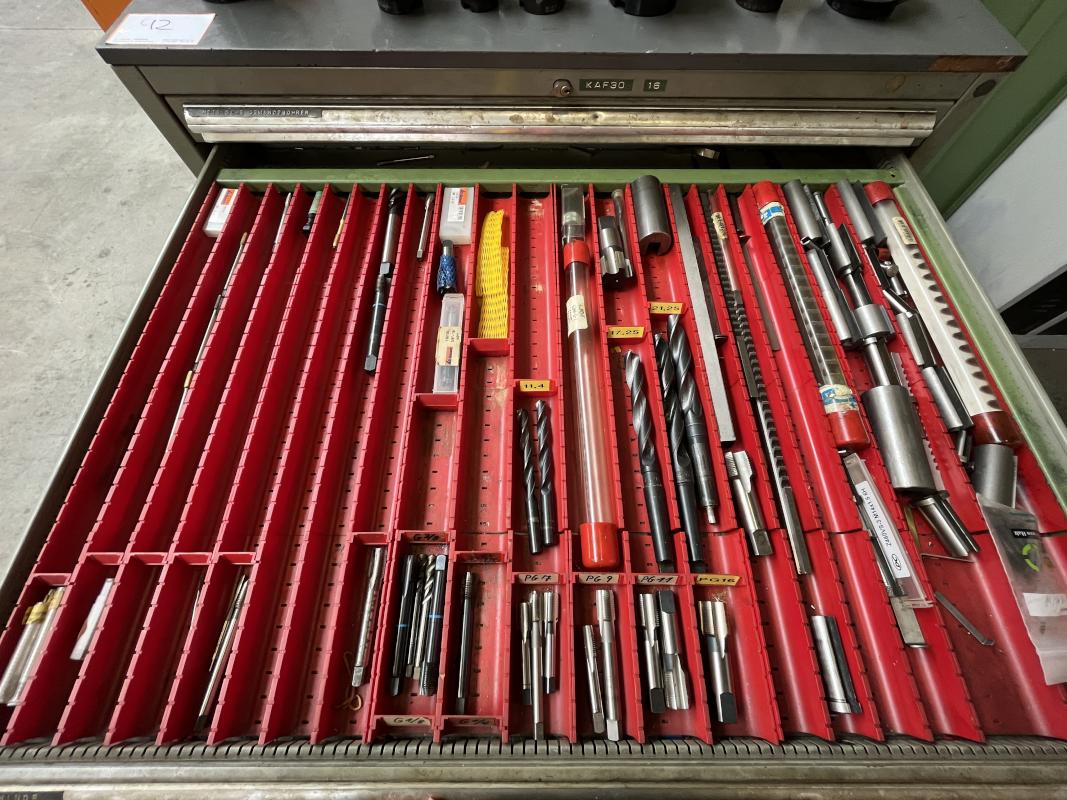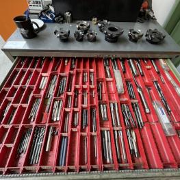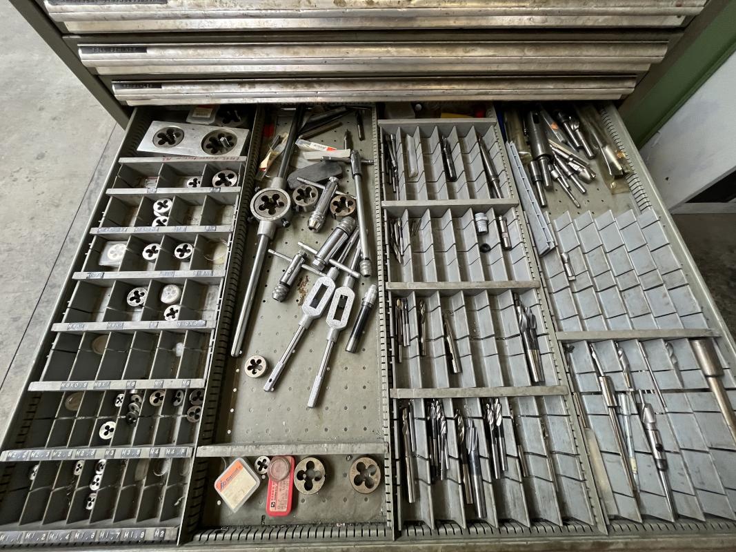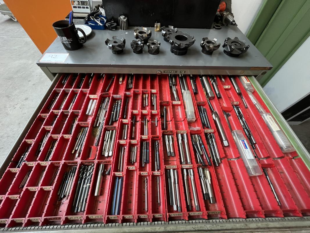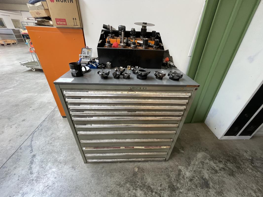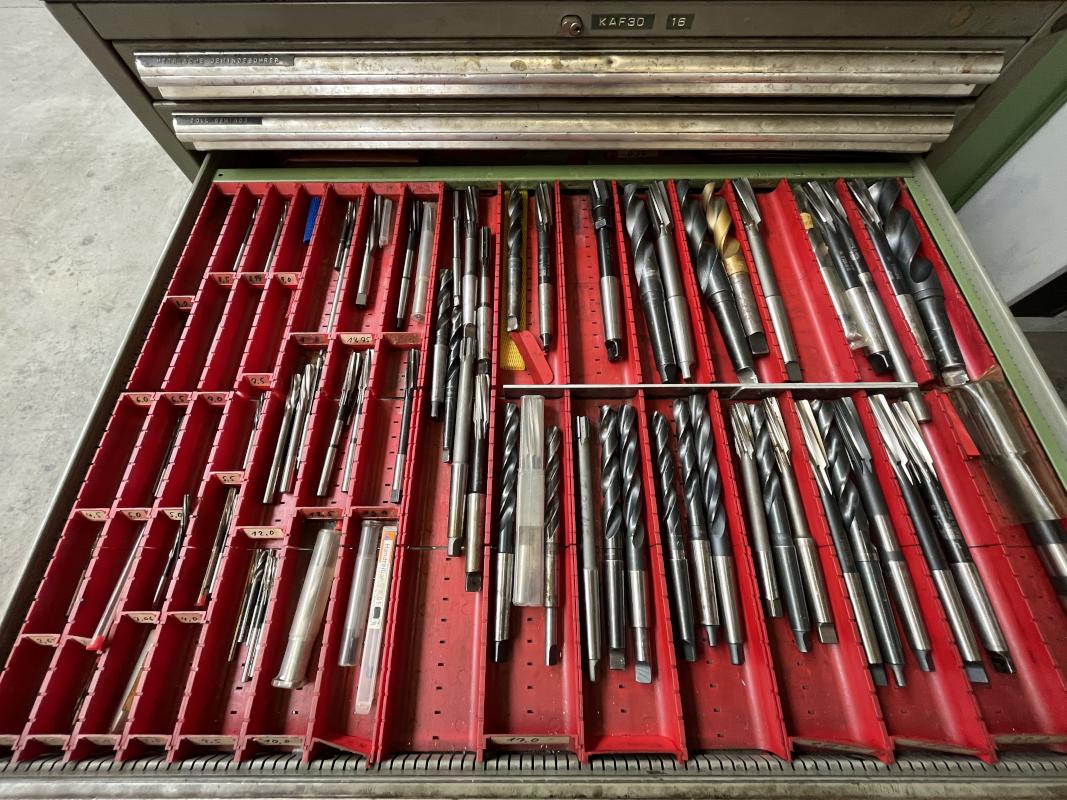Fabrikat: HAAS, Typ: UMC 750SS, Baujahr: 2017, Ser.-Nr. 1138642, Steuerung, Fabr. Haas, Verfahrwege X/Y/Z 762 x 559 x 508 mm, C-Achse 360°, B-Achse -35 °C bis +110 °C, High-Speed-Dreh-/Schwenktisch, Ø 500 mm, Drehzahl 15.000 U/min, Inline-Direktantrieb, Eilgänge 30,5 m/min, Abstand Spindeltisch 102-610 mm, Werkzeugaufnahme SK40, 40-facher Werkzeugwechsler, Messtaster, Fabr. Renishaw, Werkzeuge- und Werkstückmesstastsystem, Späneförderer, Fabr. Henick, inerer Kühlmittelzufuhr, Zubehör: Werkbank, 6 Auszüge, Inhalt: Werkzeugaufnahmen, Schraubstock, Teleskop-Schubladenschrank, 11 Auszüge, Inhalt: Schrittfräser, Schlichtfräser, Wendeplatten, Sonderhalter, Hartmetallfräser, Maschinenschraubstock, Teleskop-Schubladenschrank, 11 Auszüge, Inhalt: Gewindebohrer, Schneideisen, Zapfensenker, div. Werkzeugaufnahmen, NC-Spanner