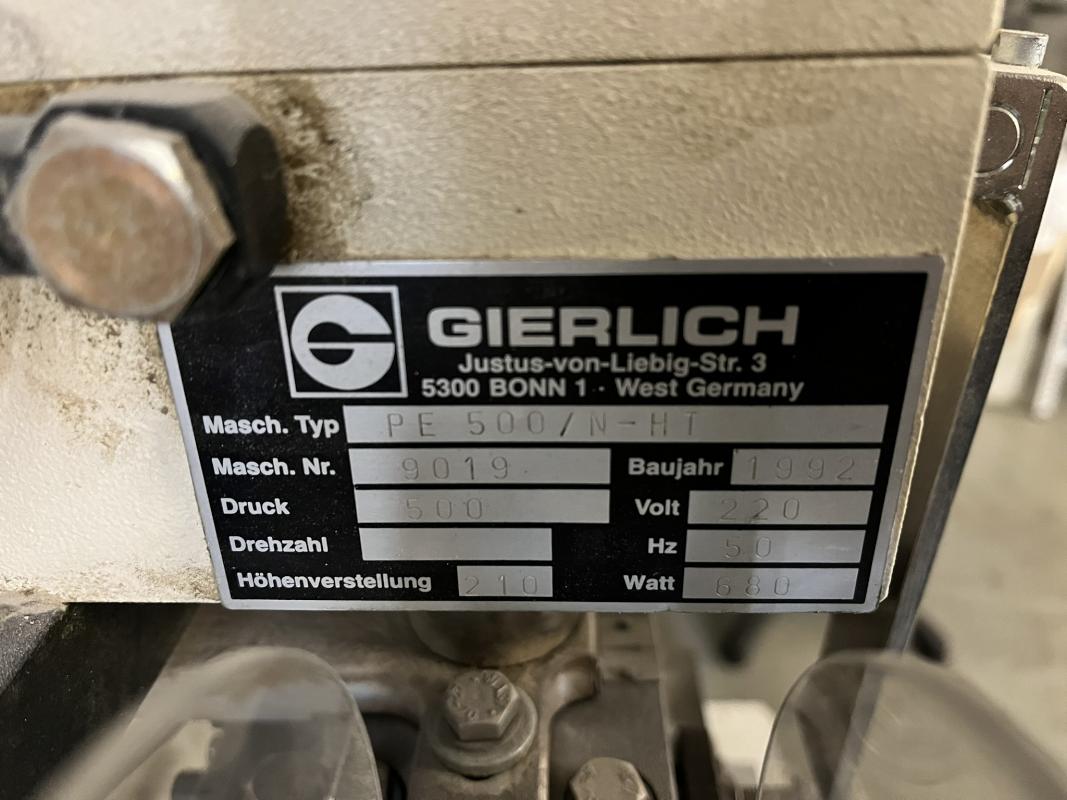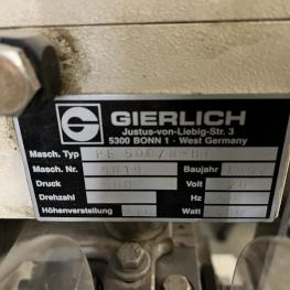 Fabrikat: GIERLICH, Typ: PE 500/N-HAT, Baujahr: 1992, Serien-Nr. 9019, Höhenverstellung 210 mm, Untertisch