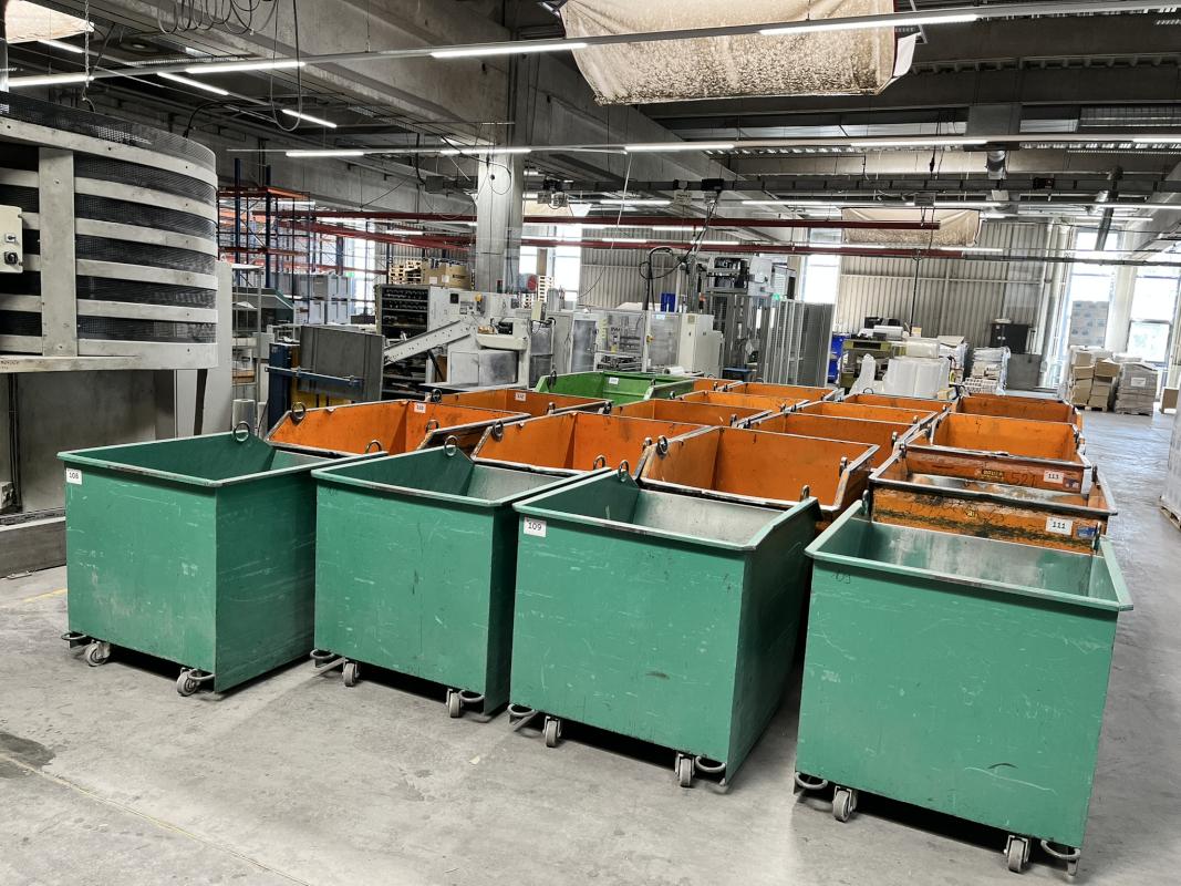 Fabrikat: BAUER, 2 Stk. Kippbehältern, Fassungsvermögen 1,15 m³, rollbar