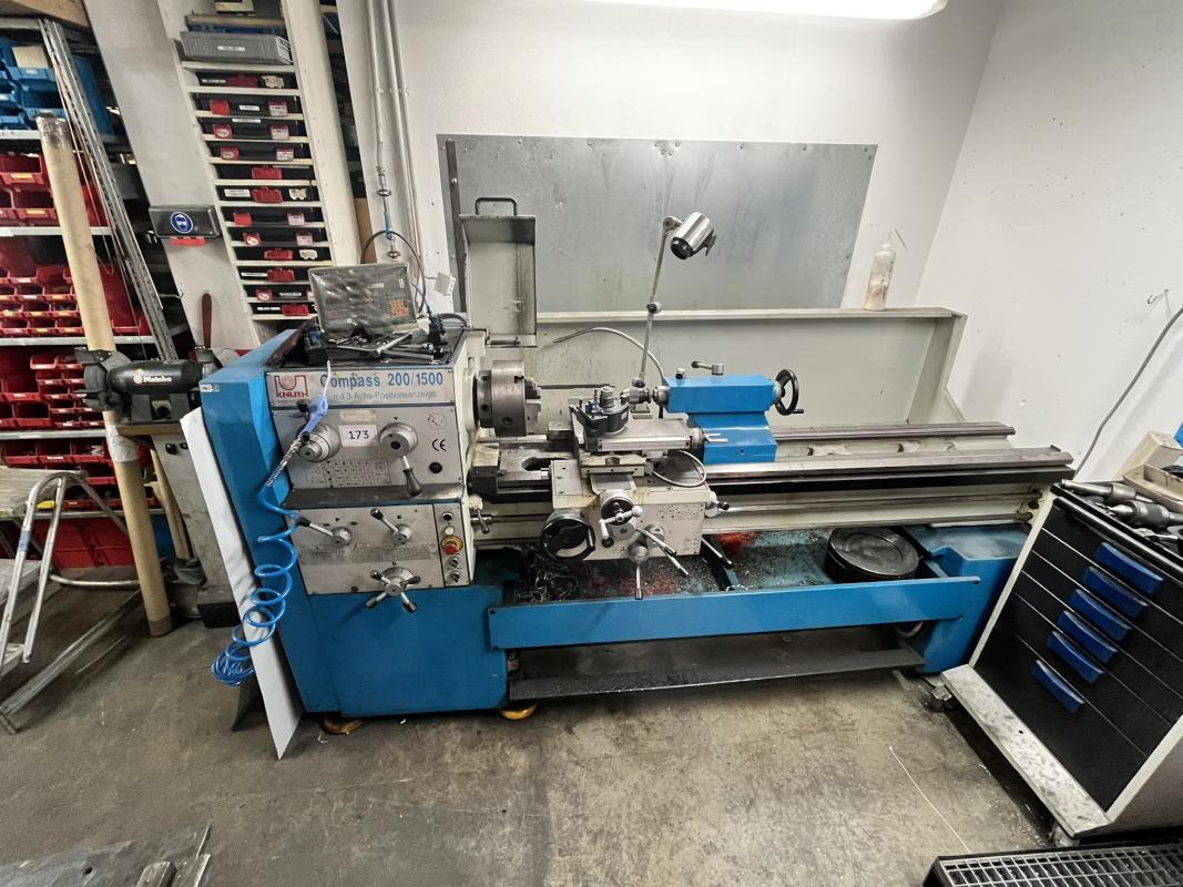 Fabrikat: KNUTH, Typ: Compass 200/1500, Baujahr: 2006, Ser.-Nr. 133861, Spitzenweite 1.000 mm, max. Drehdurchmesser über Bett 400 mm, 3-Achspositionsanzeige, Reitstock, 3-Backenfutter, Zubehörschrank, 6 kW