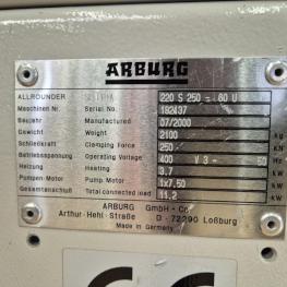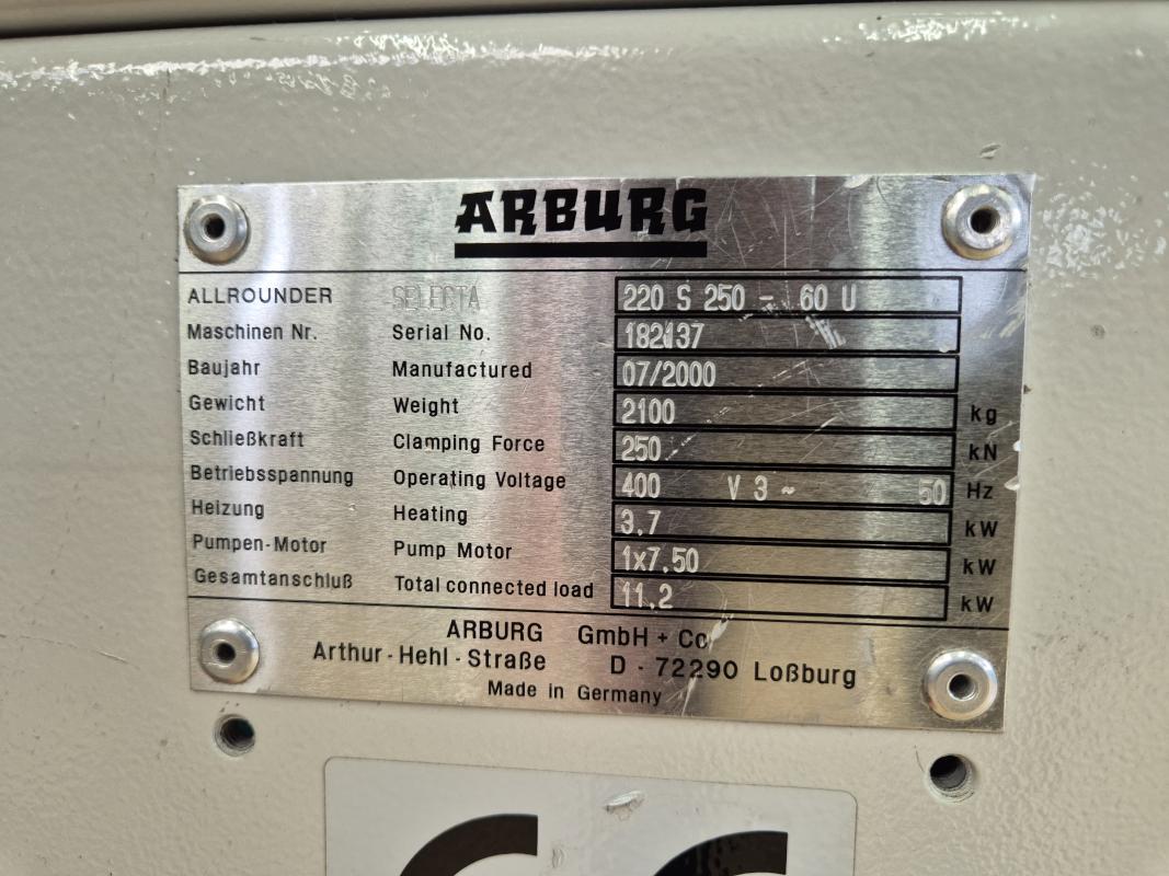 Fabrikat: ARBURG, Typ: Allrounder 220 S-150-60 Universal, Baujahr: 2000, Ser.-Nr. 182137, Steuerung, Fabr. Arburg, Typ Selogica, Schließkraft 250 kN, Schneckendurchmesser 15