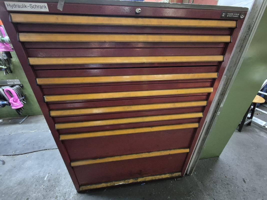 Fabrikat: HAHN & KOLB, B 1.000 mm, 10 Auszüge, 1 Stahlschrank 2-türig, Inhalt: Handarbeitszeug, Hydraulikzubehör