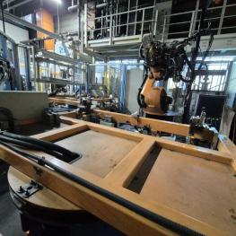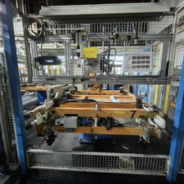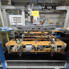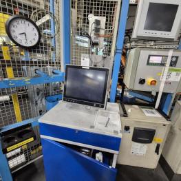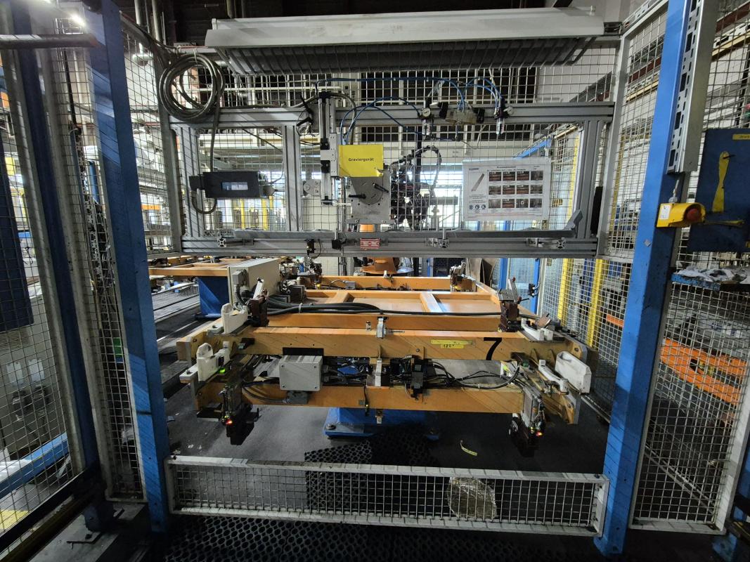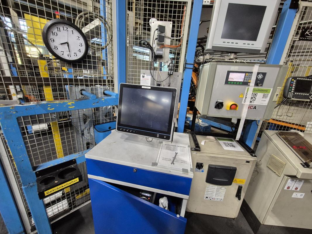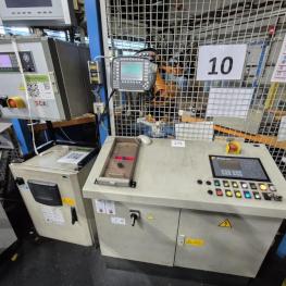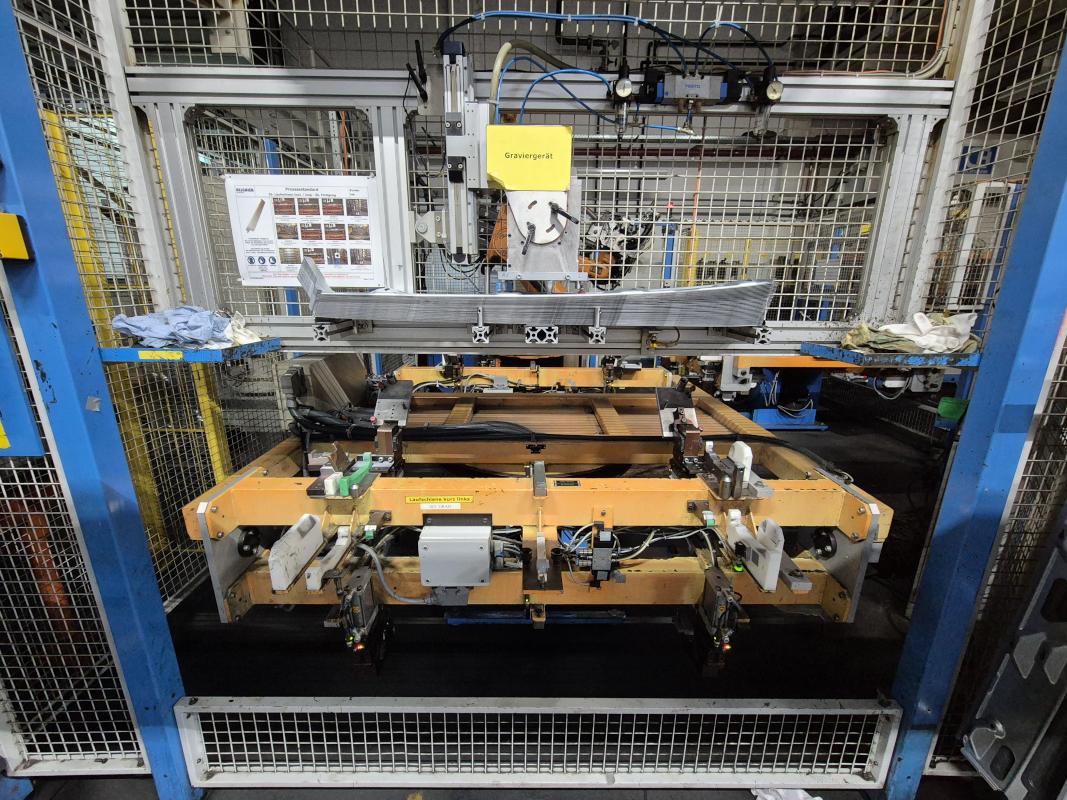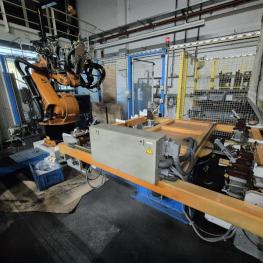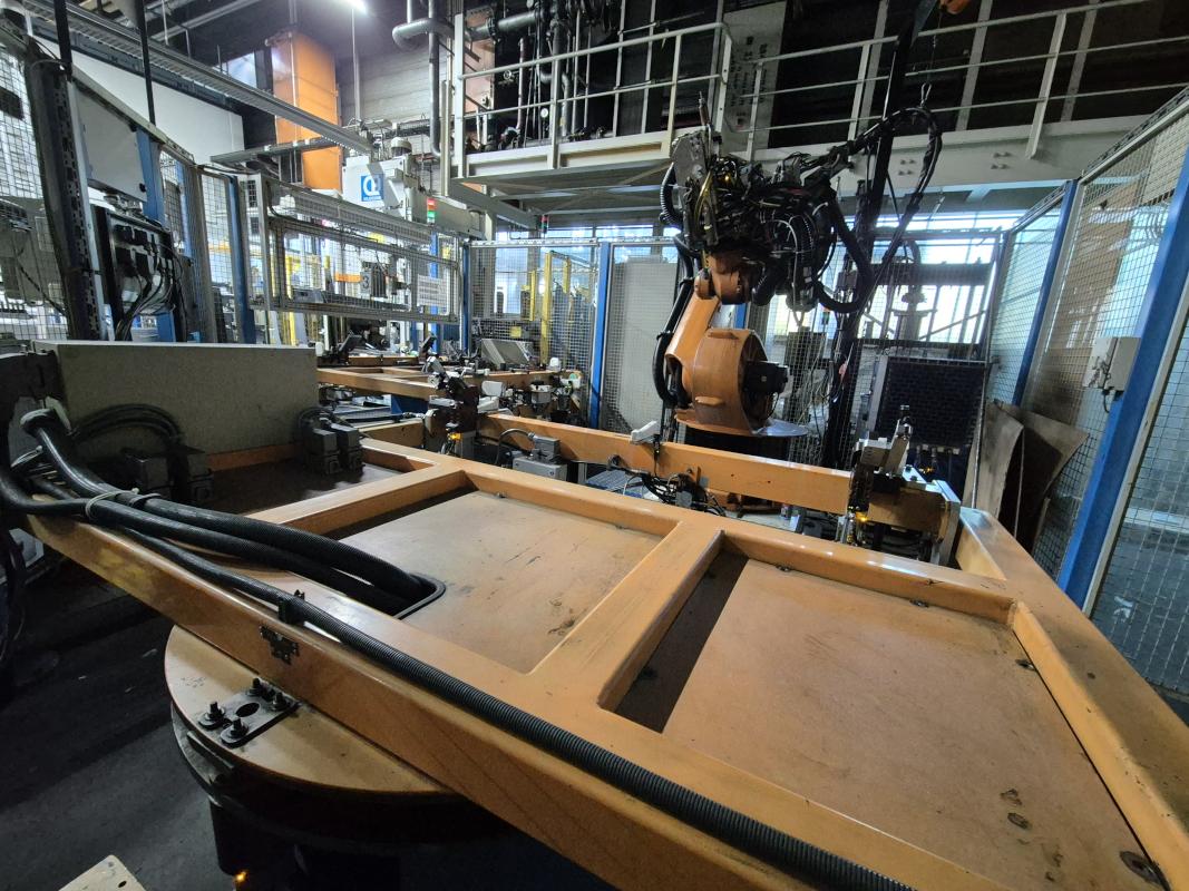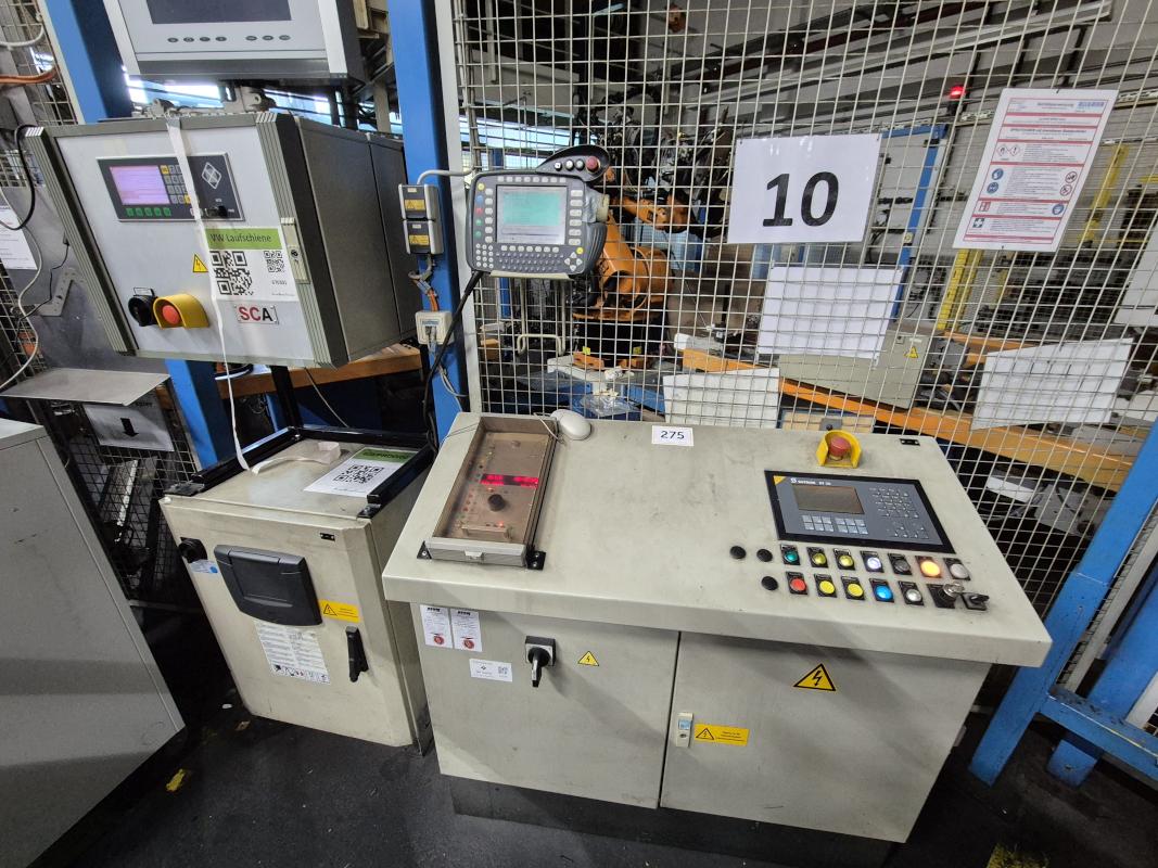 Baujahr: 2002, best. aus: Drehtisch "Aufgabe", Signierstation, Roboter, Fabr. Kuka, Steuerung KRC1, Punktschweißzange, Klebestation, Fabr. SCA, Typ HS0915-001080, Bj. 2002, Dosiersteuerung, Drehtisch "Ausgabe", Schutzzaunanlage, Schalt- und Steuerschränke, Anlagensteuerung mit Display Sütron BT20