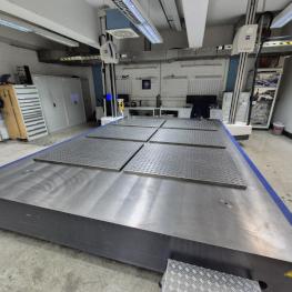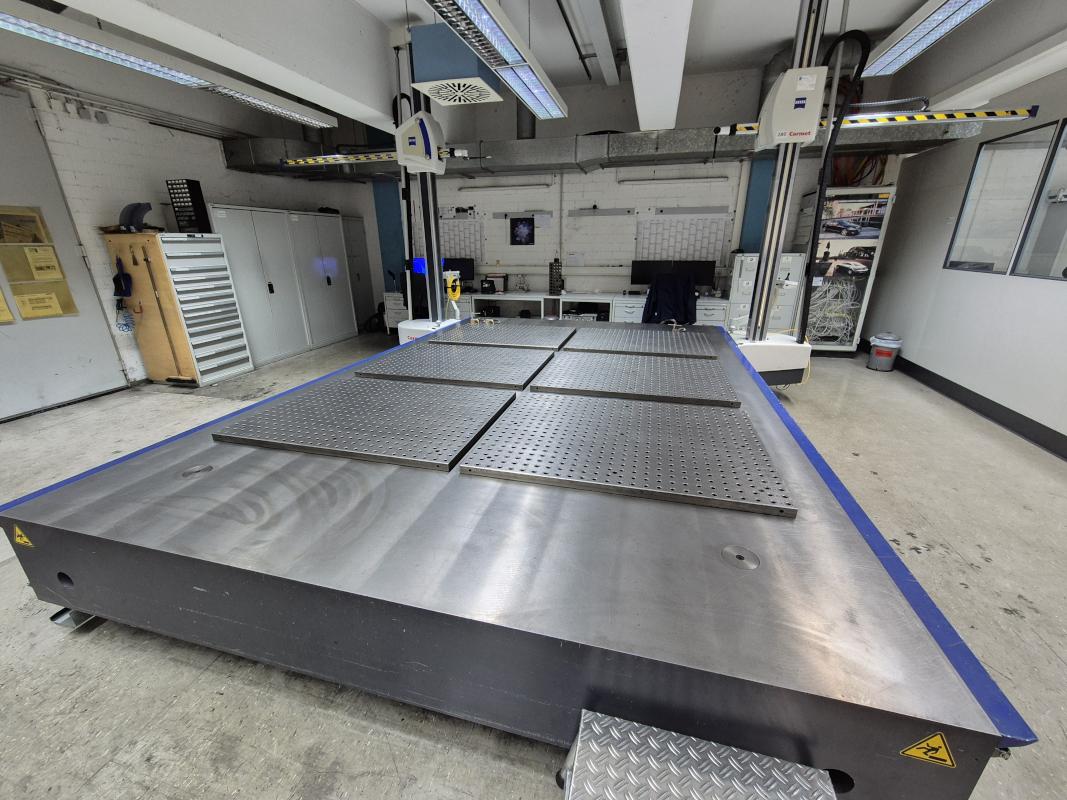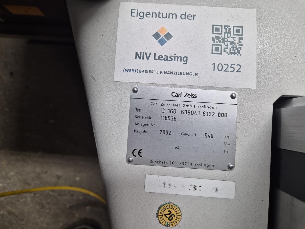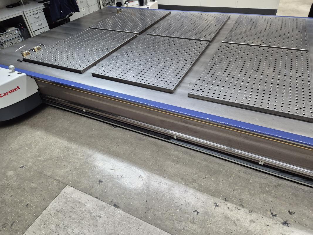 Fabrikat: ZEISS, Typ: Carmet C160/639041-8122-000, Baujahr: 2002, Ser.-Nr. 116536 + 113924, 2 Ständer, Tisch L/B 4.800 x 3.000 mm, 6 Rasterplatten, 1.000 x 1.300 mm, Rastermaße 50 mm, Messsoftware, Metrolog V21, 2 Messtaster, Fabr. Zeiss, Typ RDS-CAM, Steuer- und Auswerteinheit, 2x PC, TFT-Monitor, Tastatur, Maus, 2 Stahlschränke, Tischanlage, 3-teilig, Schubladenschrank, Fabr. Lista, 13 Auszüge, Inhalt: Messzubehör, Nullpunkt Spannwagen mit Raterplatte 3.500 x 1.500 mm
