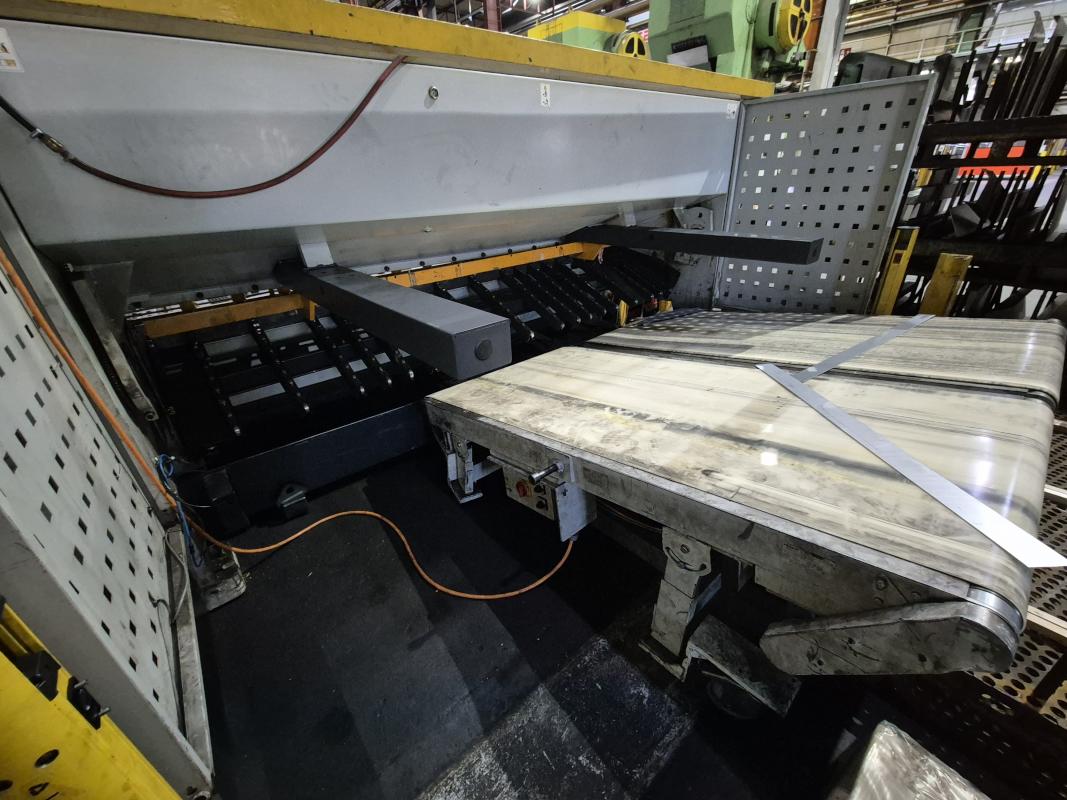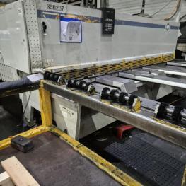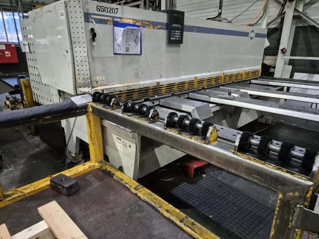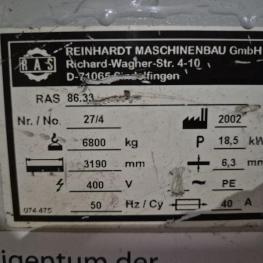 Fabrikat: RAS, Typ: 86.33, Baujahr: 2002, Ser.-Nr. 27/4, Arbeitsbreite 3.190 mm, Blechstärke max. 6,3 mm, Steuerung, System 2005, für Hinteranschlag und Schnittspaltverstellung, pneumatische Blechhochhaltung, Transportband, Sicherheitslichtschranken, 4 Auflagearme vorne, 2x Fußschalter, Winkelanschlag, Platinenhubtisch, 2.000 x 2.000 mm, Anschlußleistung 18,5 kW