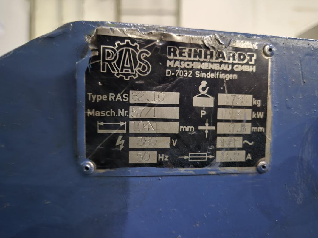 Fabrikat: RAS, Typ: 82.10, Arbeitsbreite 1.000 mm, Blechstärke max. 2 mm, Hinteranschlag manuell