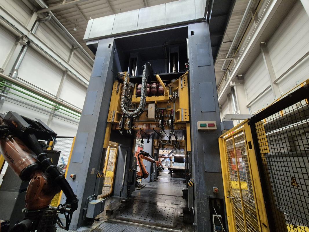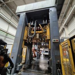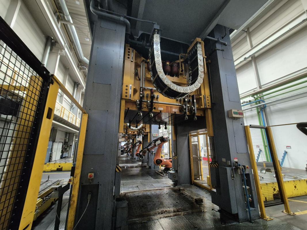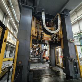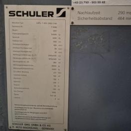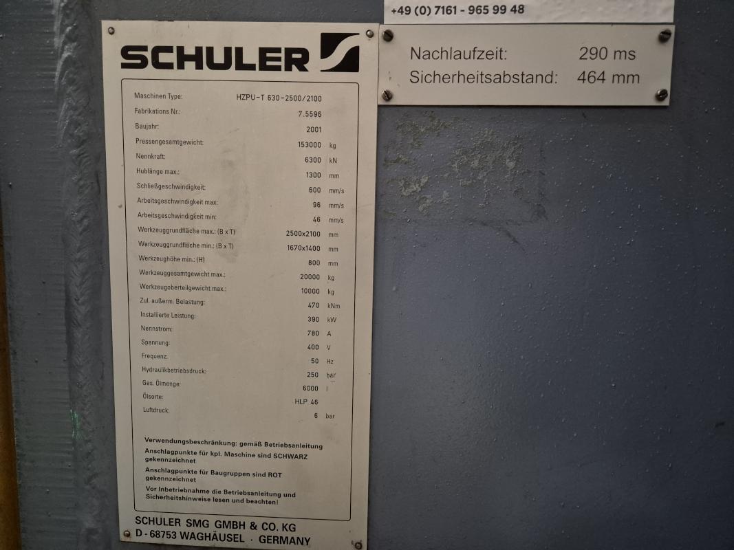 Fabrikat: SCHULER SMG, Typ: HZPU-T 630-2500/2100, Baujahr: 2001, Ser.-Nr. 7.5596, Presskraft 630 t, Wechseltisch 2.500 x 2.100 mm, Stösselfläche 2.500 x 2.100 mm, Stösselhub max. 1.300 mm, Druck Tisch Ziehkissen 24-160t, Ziehkissenhub 200 mm, Druck Stössel Ziehkissen 15-100t, Ziehkissenhub 150 mm, Pressensteuerung mit OP Siemens Simatic OP 37, Schalt- und Steuerschränke