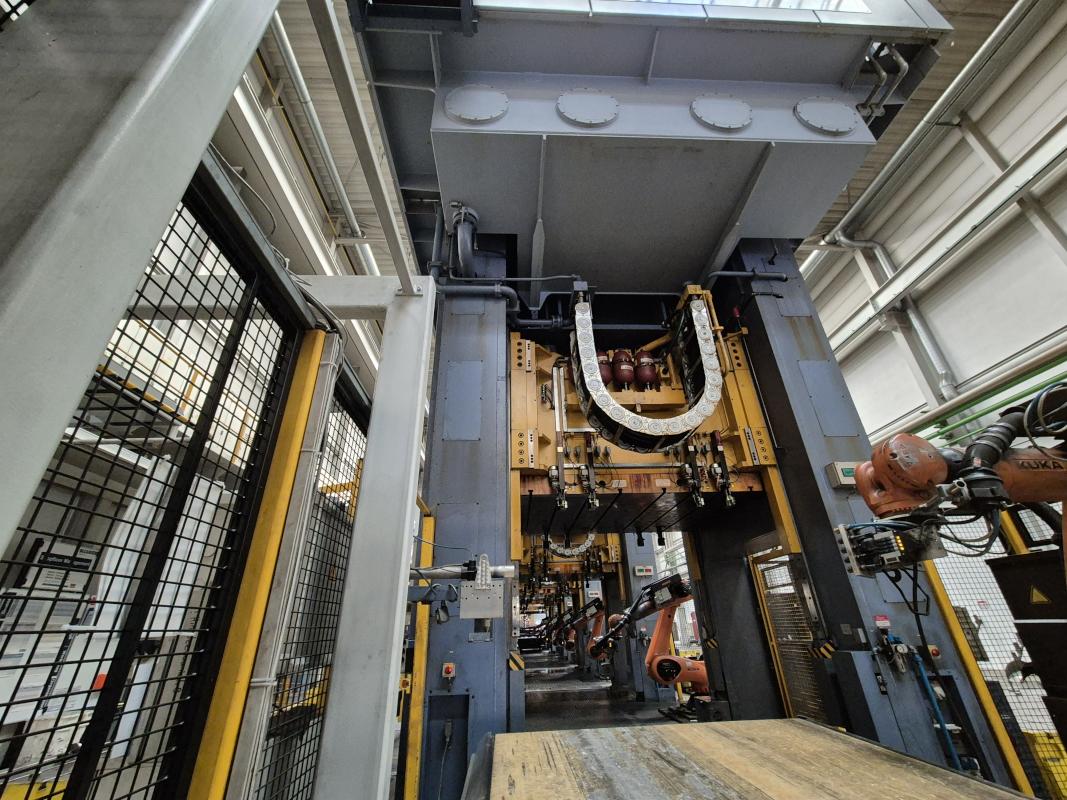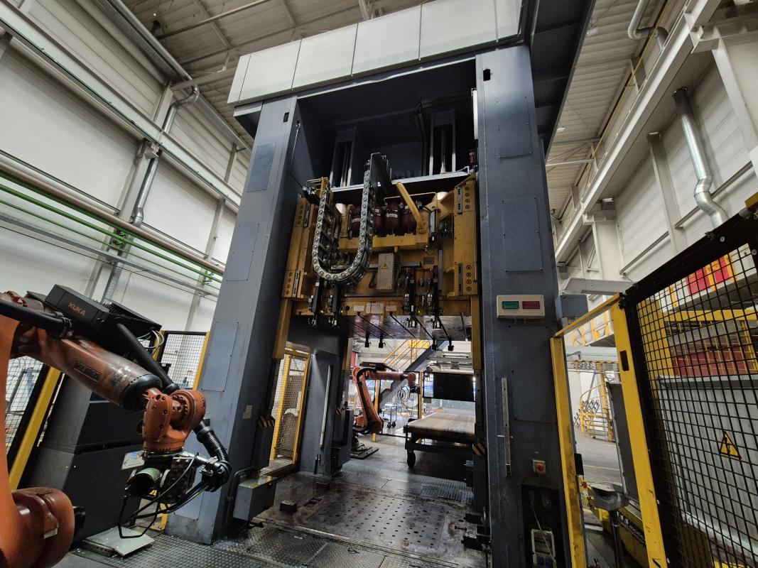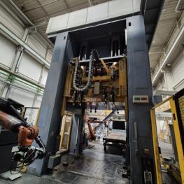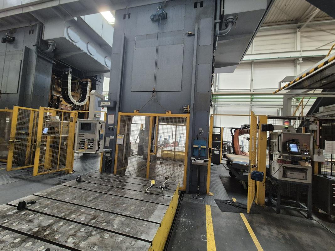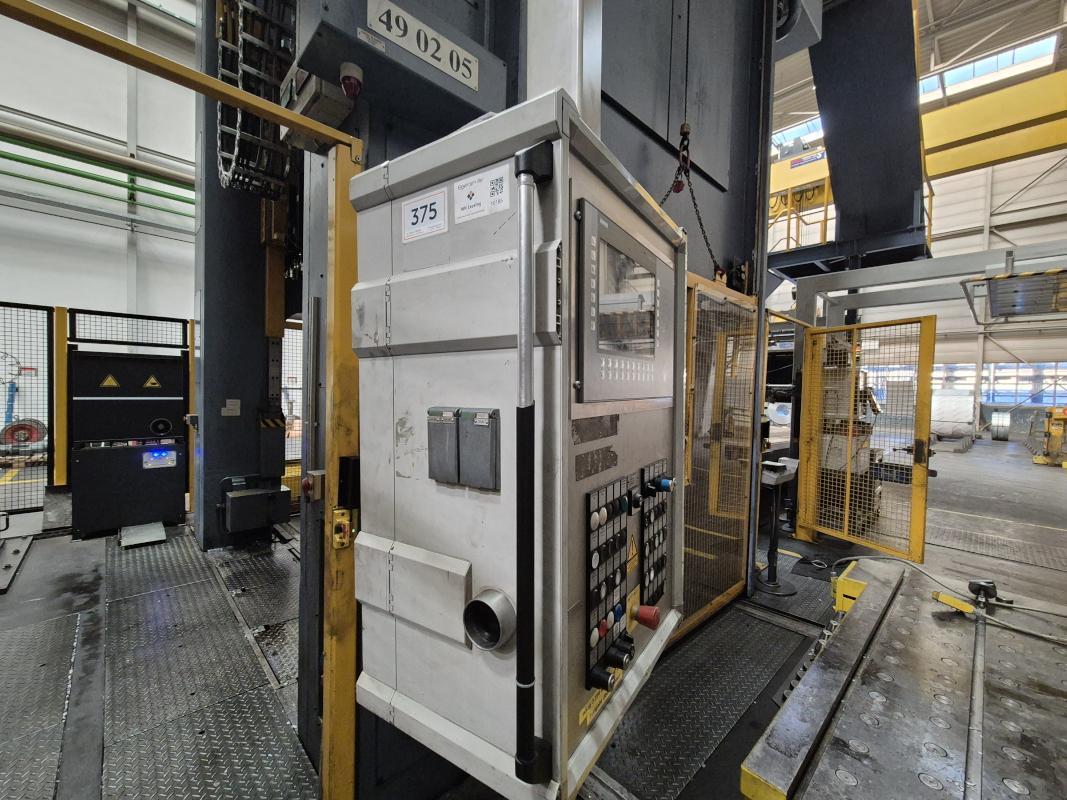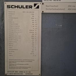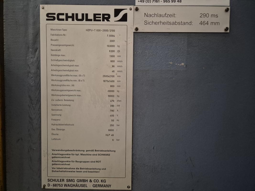 Fabrikat: SCHULER SMG, Typ: HZPU-T 630-2500/2100, Baujahr: 2001, Ser.-Nr. 7.5594, Presskraft 630 t, Wechseltisch 2.500 x 2.100 mm, Stösselfläche 2.500 x 2.100 mm, Stösselhub max. 1.300 mm, Druck Tisch Ziehkissen 24-160t, Ziehkissenhub 200 mm, Druck Stössel Ziehkissen 15-100t, Ziehkissenhub 150 mm, Pressensteuerung mit OP Siemens Simatic OP 37, Schalt- und Steuerschränke