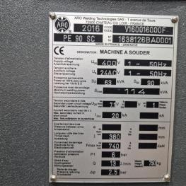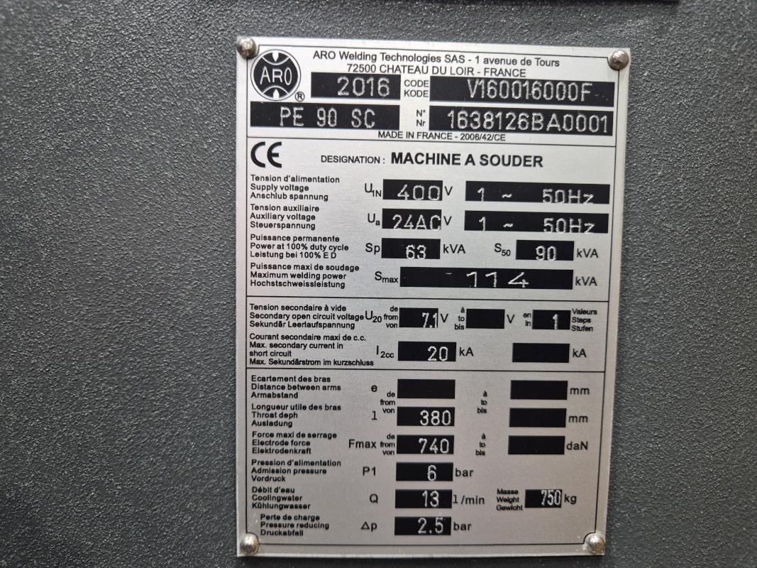 Fabrikat: ARO, Typ: PE90SC, Baujahr: 2016, Ser.-Nr. V160016000F, Schweißleistung 114 kVA, Schweißsteuerung, Fabr. Aro, Typ Micro 2X16III