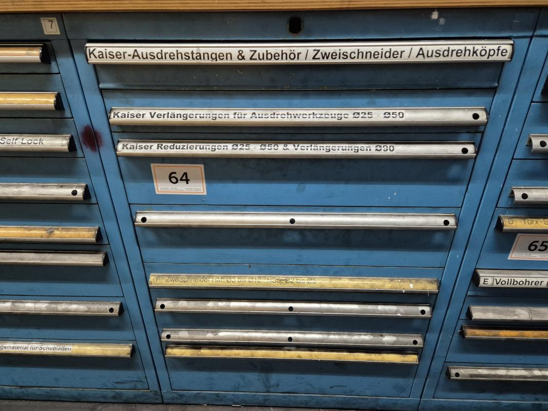 Fabrikat: LISTA, B 720, 8 Auszüge, Inhalt: Verlängerungen / Reduzierungen System Kaiser, Einsätze Gewindeschneidfutter, Rüstwerkzeuge