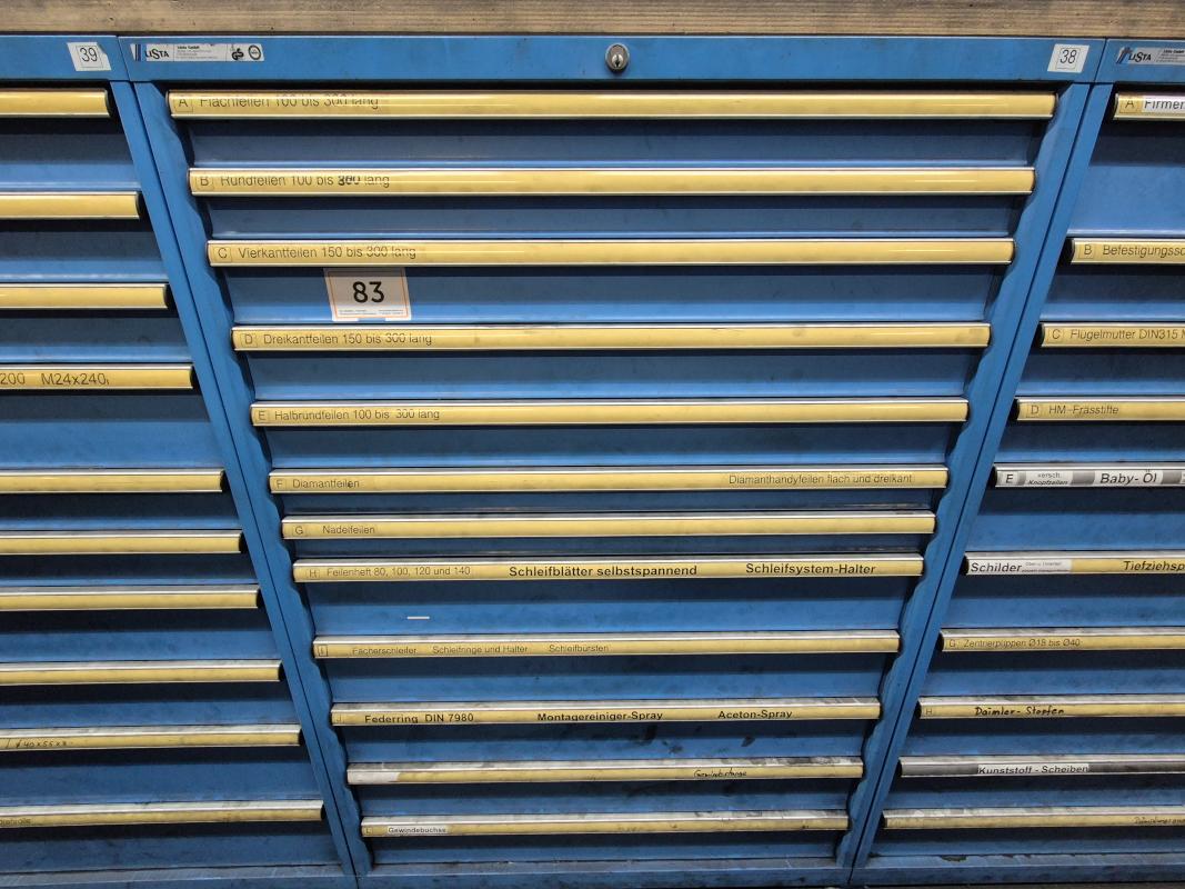 Fabrikat: LISTA, B 1.000 mm, 10 Auszüge, Inhalt: Feilen, Feilenhefte, Fächerschleifer, Schleifringe