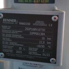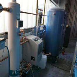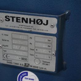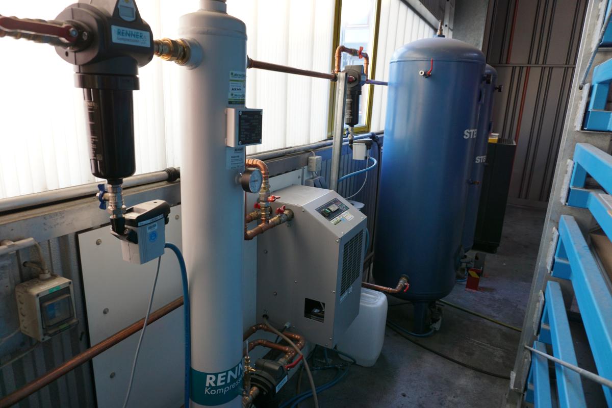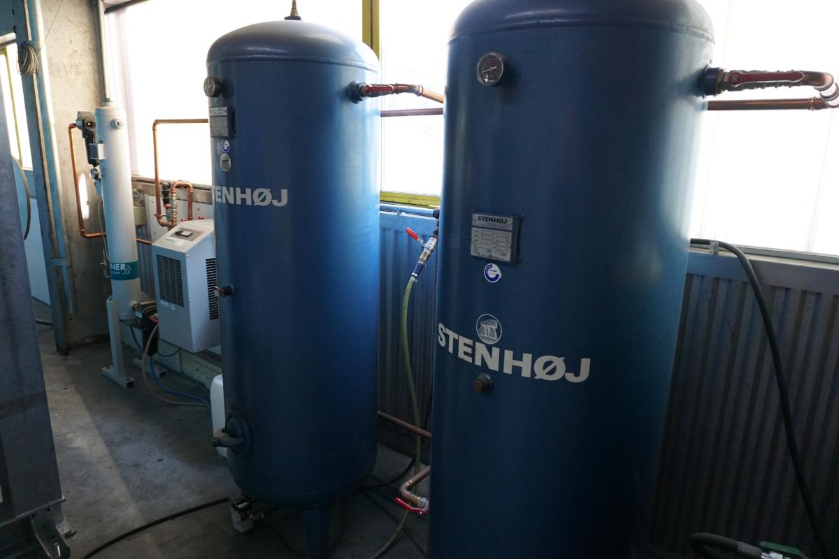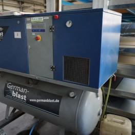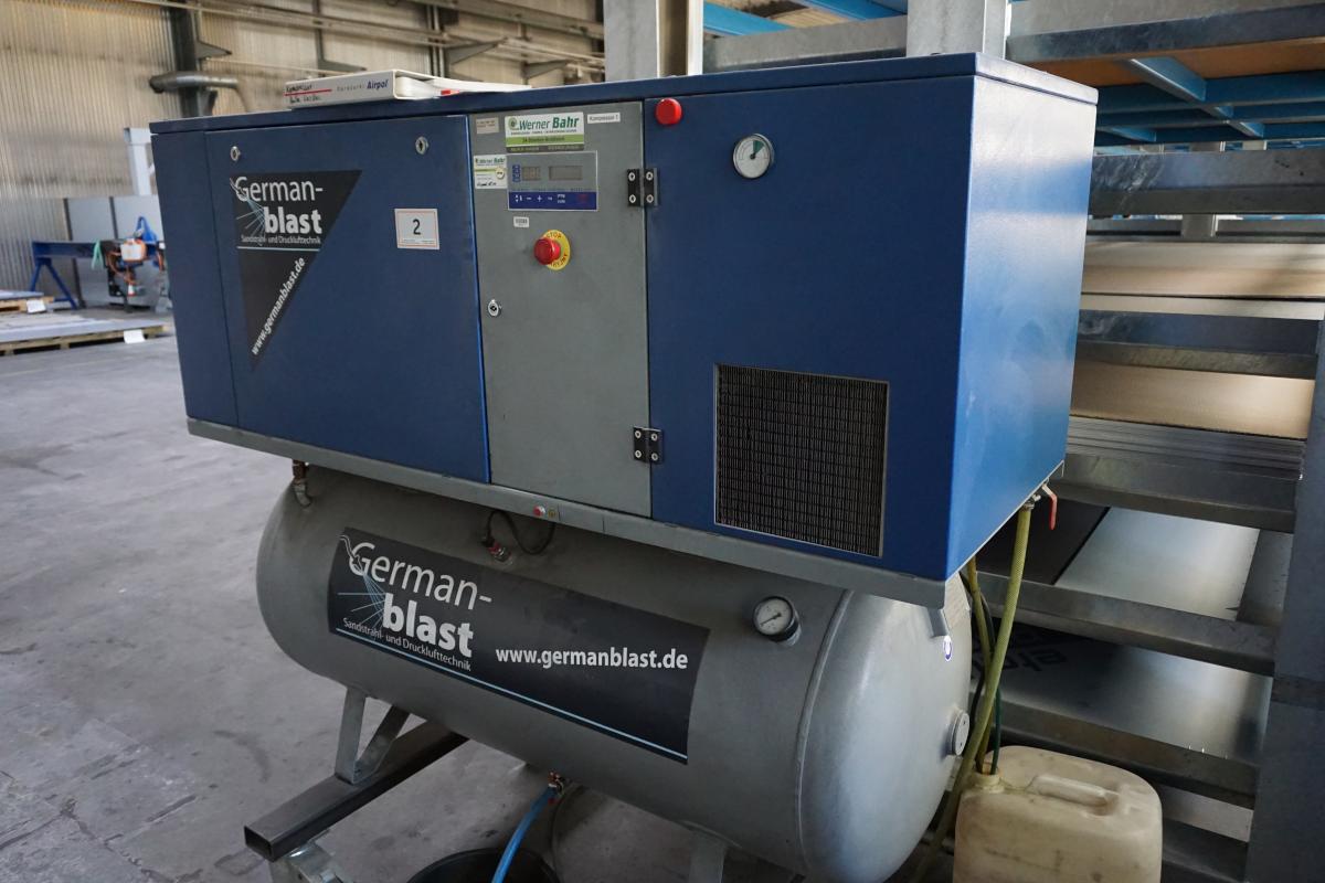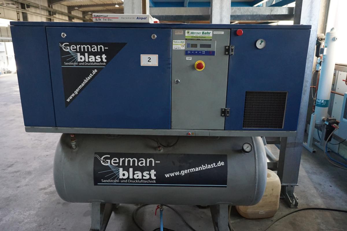 Typ: German-Blast/Airpol/Stenhoj, mit Druckluftkessel, Fabr. Komnino, Typ KP-400/S-10, Baujahr: 2008, Serien-Nr.: 2245, Druckluftbehälter, Serien-Nr.: 166147, 500 l, max. 11 bar, Temperaturbereich -10 bis +150 °C, Druckluftbehälter, Serien-Nr.: 201541, 500 l, max. 16 bar, Temperaturbereich -10 bis +150 °C, Kältetrockner, Öl-Wasser-Trennsystem, Fabr. Renner