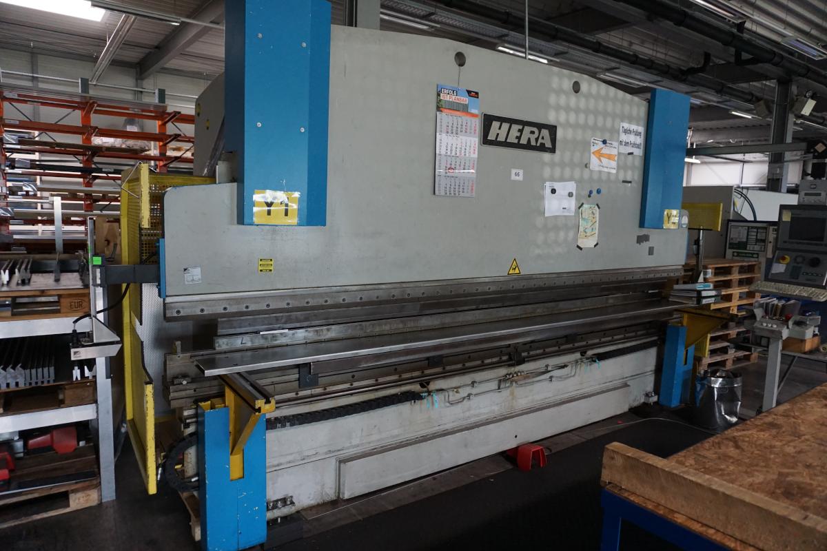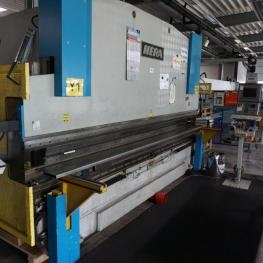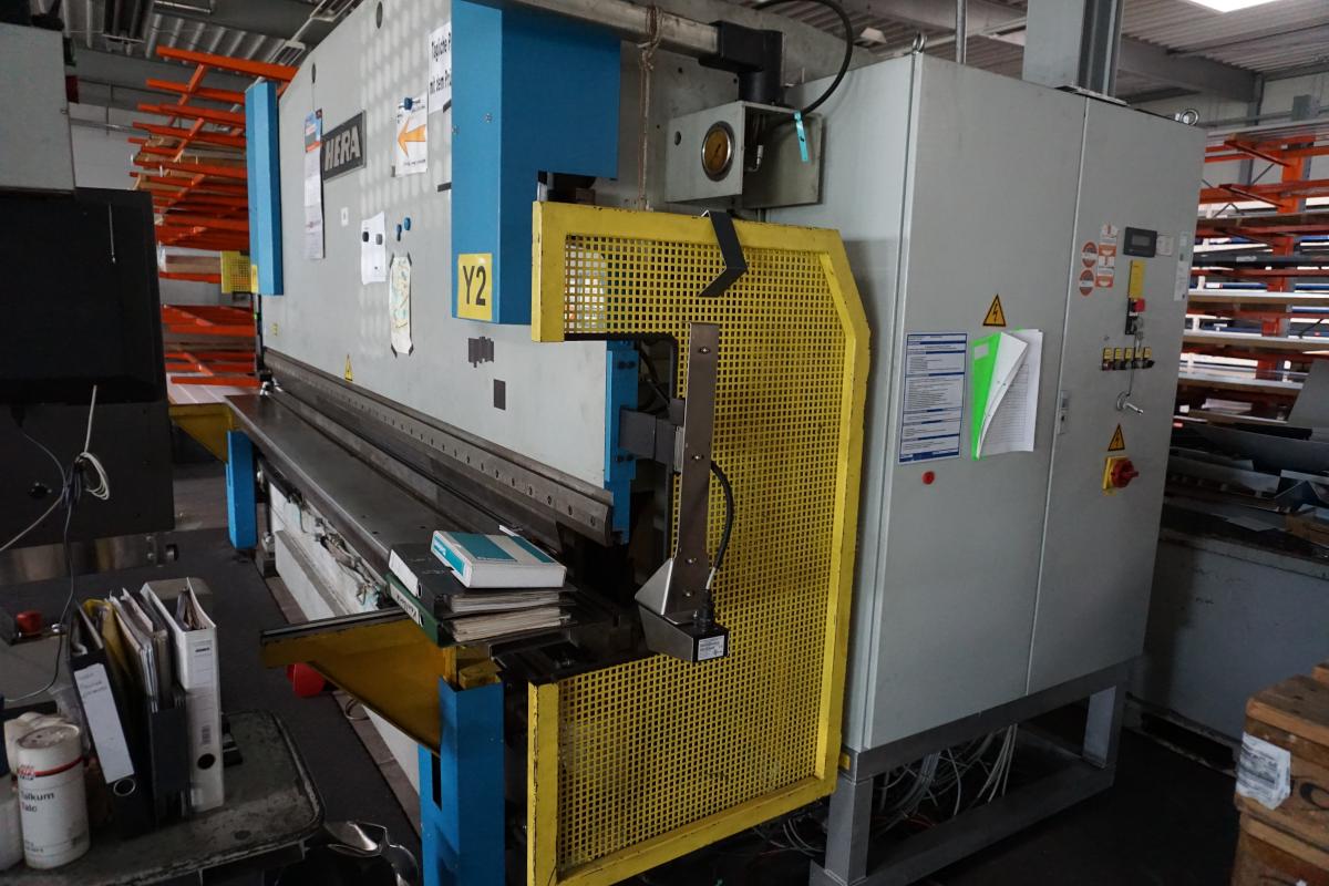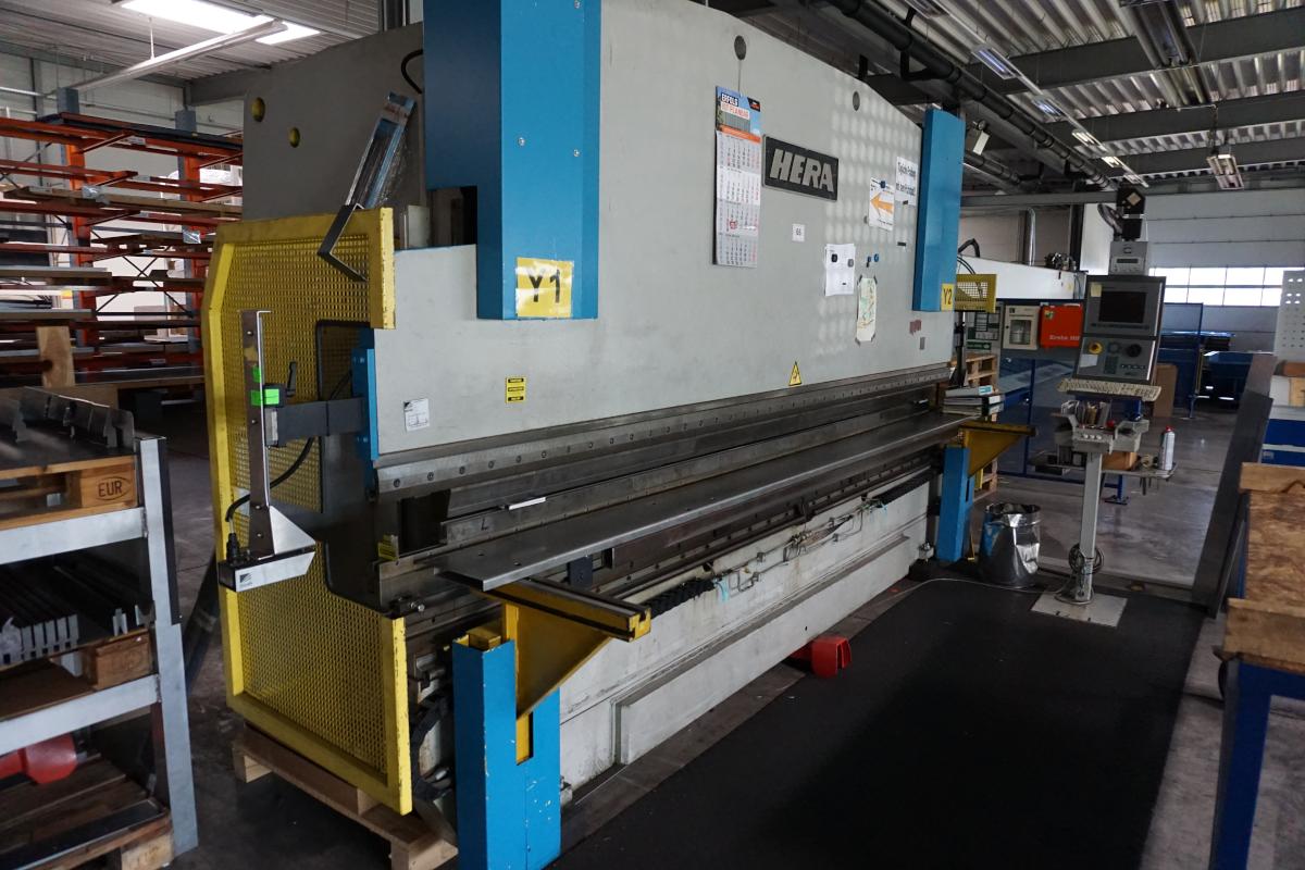 Fabrikat: HERA, Typ: COP 110, Baujahr: 1990, Maschinen-Nr.: 5048, Steuerung, Fabr. Delem, Typ DA-65W, Presskraft 1.100 kN, Abkantlänge 4.100 mm, Ständerweite 3.550 mm, CNC-gesteuerte X/R-Achse, CNC-gesteuerte Bombierung, hydr. Stempelklemmung, Laserschutzanalage, Fabr. Trumpf