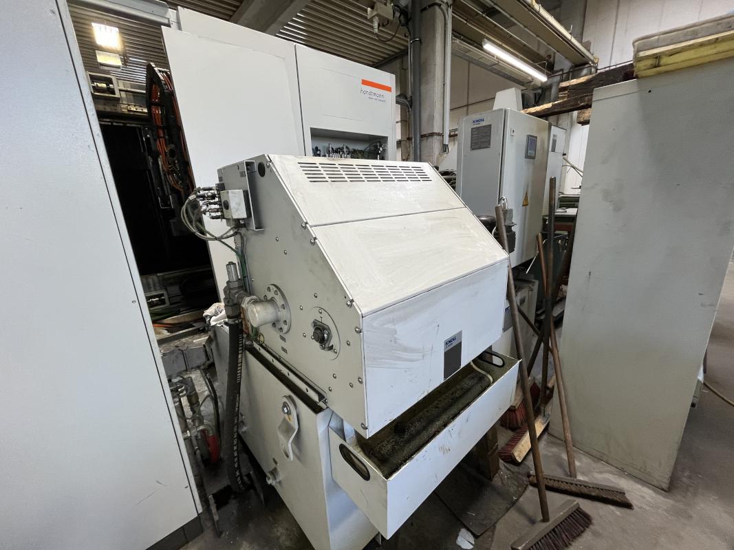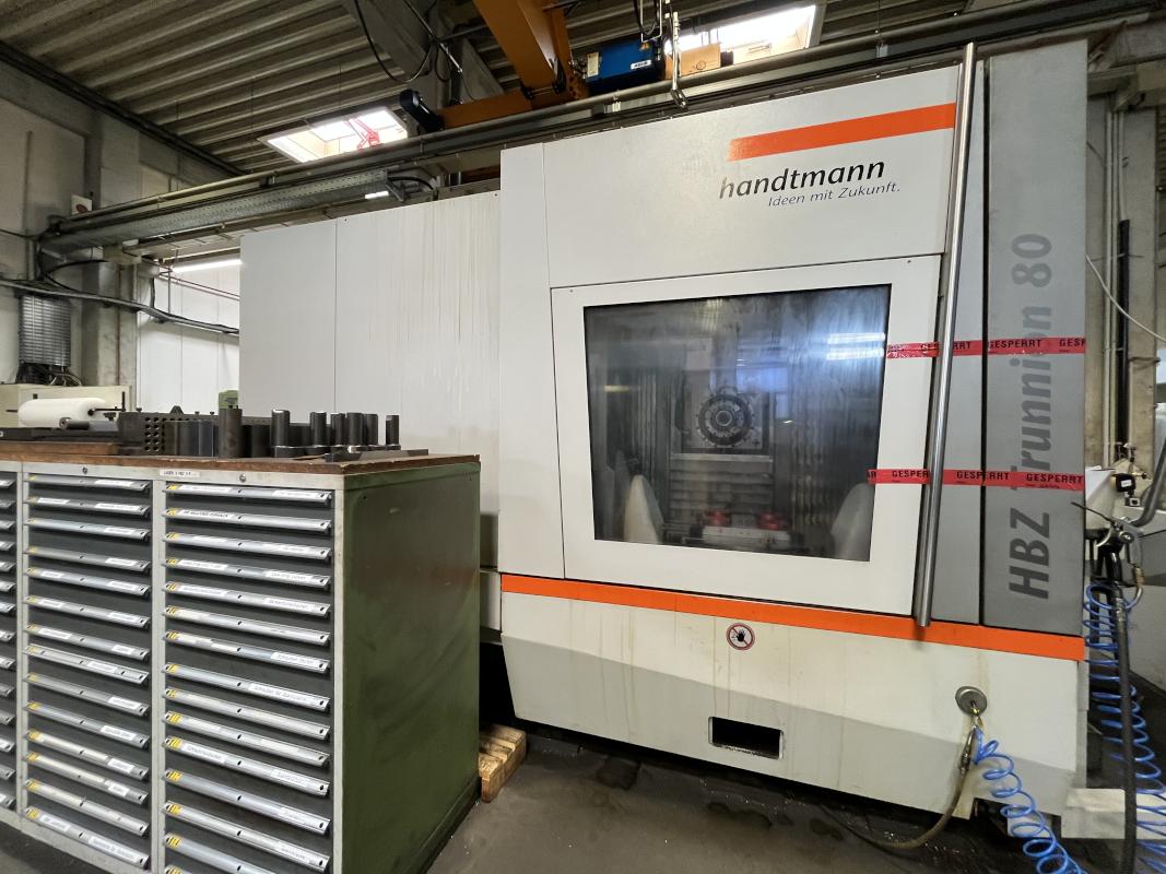 Fabrikat: HANDTMANN, Typ: HBZ Trunnion 80, Baujahr: 2014, Ser.-Nr. 200793, Steuerung, Fabr. Heidenhain, Typ TNC640, Verfahrwege X/Y/Z 850 x 850 x 700 mm, A-Achse max. -30/+120°, C-Achse 360° Werkzeugaufnahme HSK 63A, max. Werkstückgröße Ø 850 x 630 mm, max. Werkstückgewicht 1.200 kg, Werkzeugwechsler 40-fach, NC-Dreh-/Schwenktisch, Tisch-Ø 800 mm, Spindeldrehzahl max. 30.000 U/min, Späneförderer, Fabr. Knoll, Typ 600K-3, Bandfilteranlage, Fabr. Knoll, Schaltschrank, Fabr. Knoll, Steuerung defekt 3, Verfahrwege 850 x 850 x 700 mm