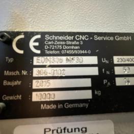 Fabrikat: EXERON, Typ: S 306 MF20/30, Baujahr: 2015, Ser.-Nr. 306-0102, Steuerung, Fabr. Exeron, Typ MF20/30, Verfahrwege 1.200 x 750 x 500 mm, Werkstückaufspanntisch 1.500 x 1.200 mm, Behältergröße 1.550 x 1.250 mm, Füllhöhe 550 mm, Abstand Tisch/Elektrodenaufnahme 300 - 800 mm, Werkstückgewicht max. 4.000 kg, Maßstäbe in X-/Y-/Z-Achse, C-Achse mit Direktmessung, Abhebegeschwindigkeit 7,5 m/min, 8-facher Werkzeugwechsler, Spaltfilteranlage, Schaltschrank, Kühlung, CO²-Löschanlage