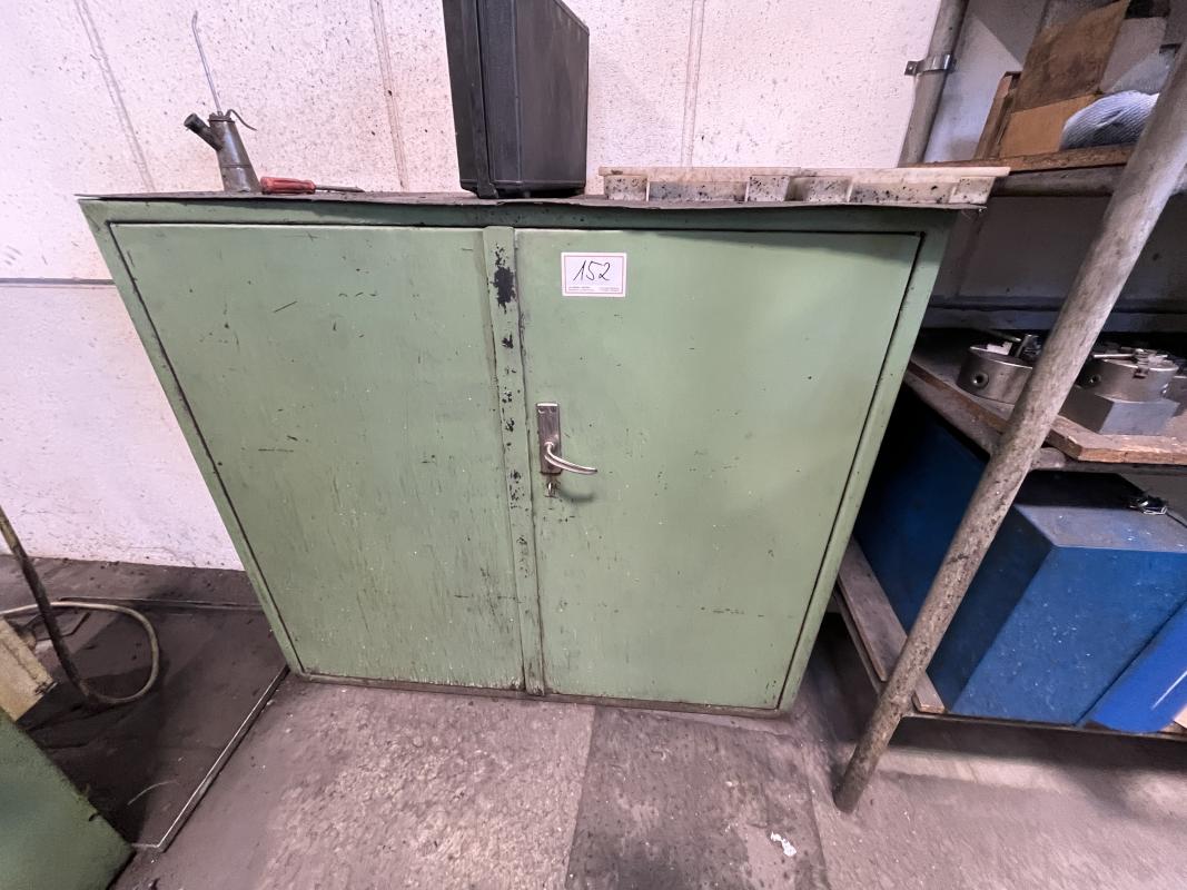 Fabrikat: ELB-SCHLIFF, Typ: SWBD12VAII, Baujahr: 1976, Ser.-Nr. 136910176, Magnetaufspannplatte, Maße ca. 1.000 x 600 mm, Schwerlastregal, Fachlast 50 kg, Stahlblechschrank, doppeltürig, abschließbar, Inhalt: div. Schleifscheiben
