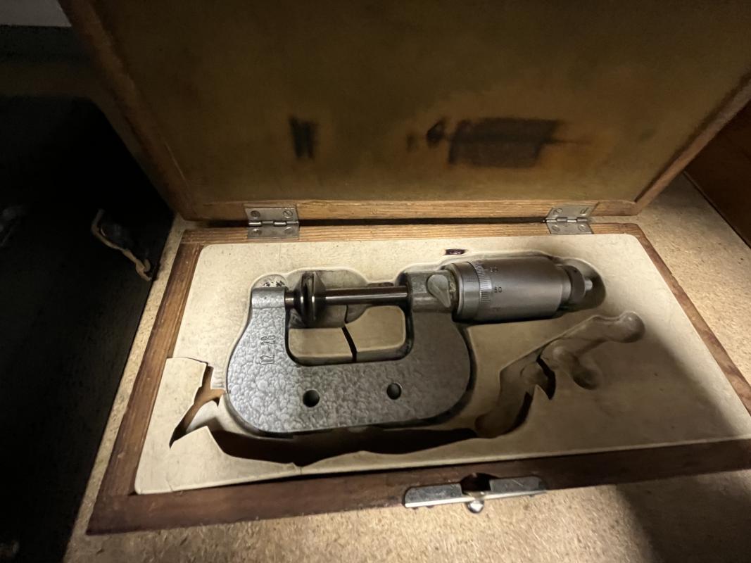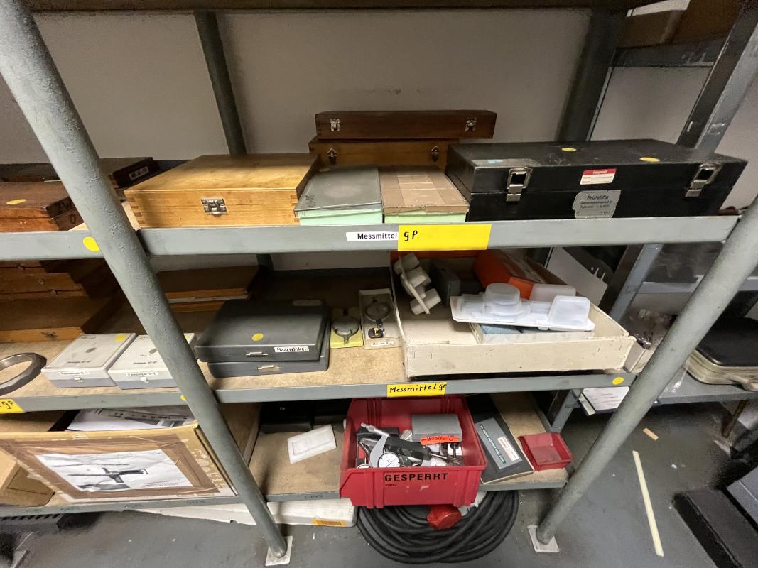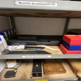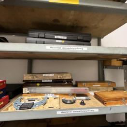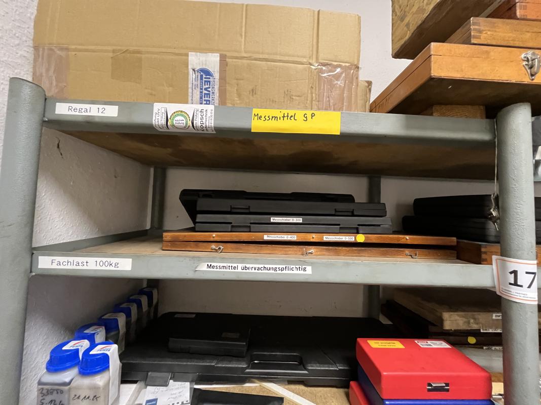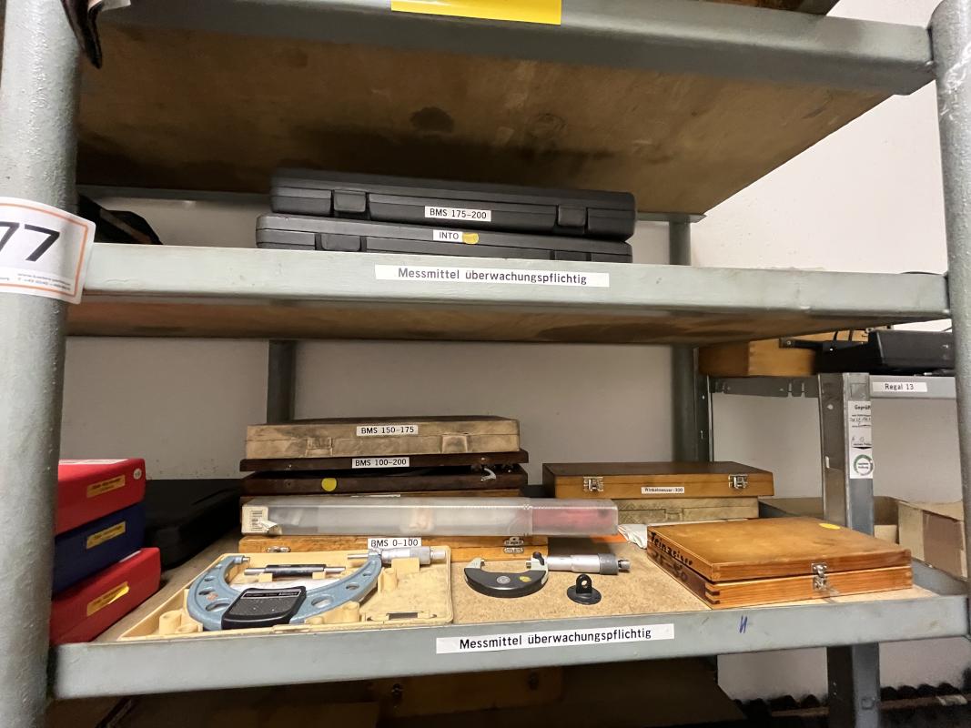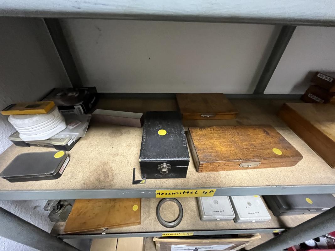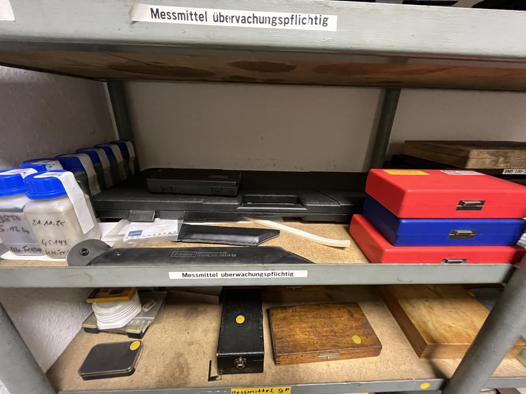 Inhalt: Messschieber, versch. Längen, Bügelmessschrauben, Winkelmesser, Feinzeiger, Tiefenmessschieber, Prüfstifte