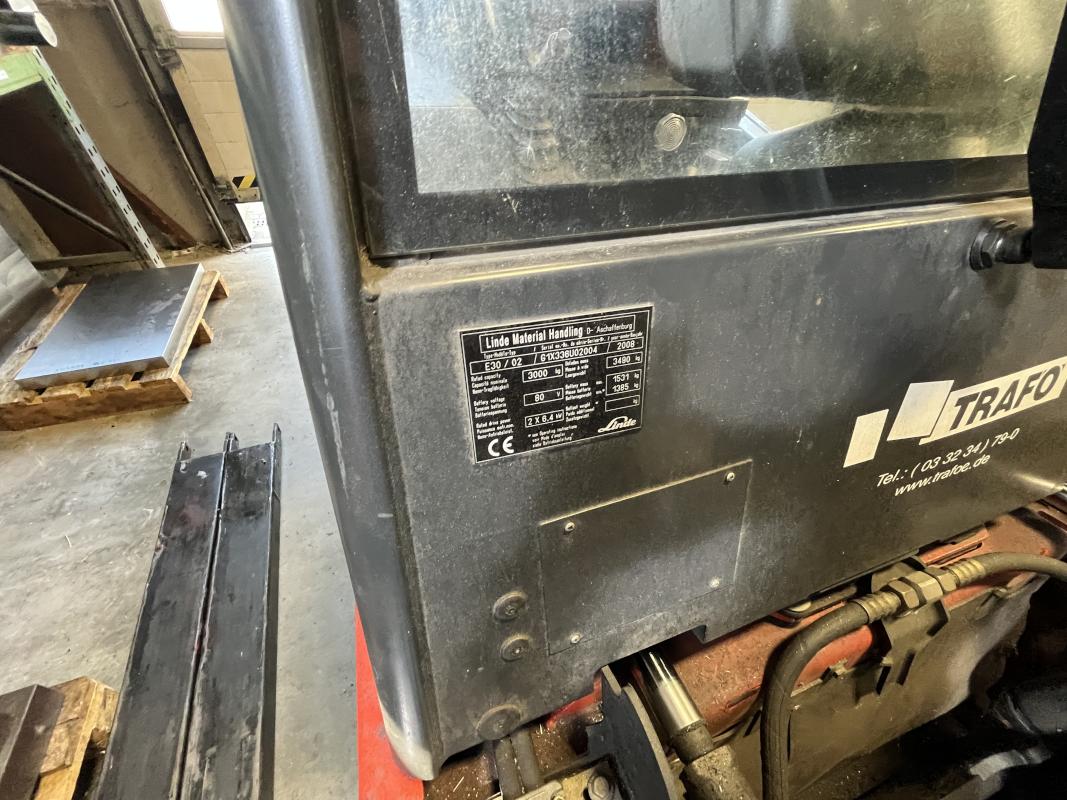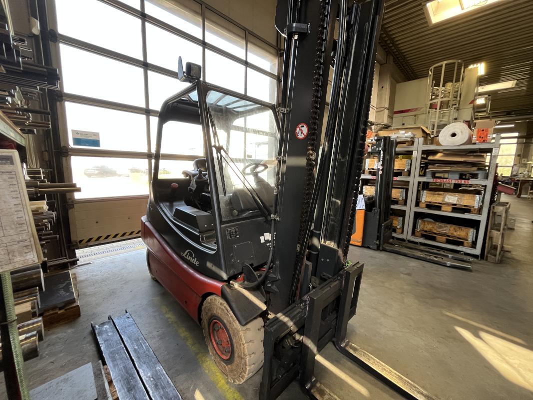 Fabrikat: LINDE, Typ: E30/02, Baujahr: 2008, Ser.-Nr. G1X336U02004, max. Tragfähigkeit 3.000 kg, max. Hubhöhe 4.500 mm, Duplex-Mast, Betr.-Std. 5.184, Gabelzinkenverlängerung, Ladegerät