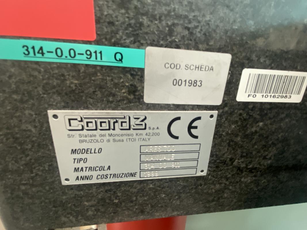 Fabrikat: COORD, Typ: Ares 700, Baujahr: 1999, Ser.-Nr. 00911, Messbereich X/Y/Z 700 x 550 x 400 mm, Messtaster, Fabr. Renishaw, Spannsystem, Fabr. Erowa, Kalibrierdorn, Messrechner, Fabr. HP, Typ Z230, Messsoftware, Fabr. ErowaVisi, PC-DMIS