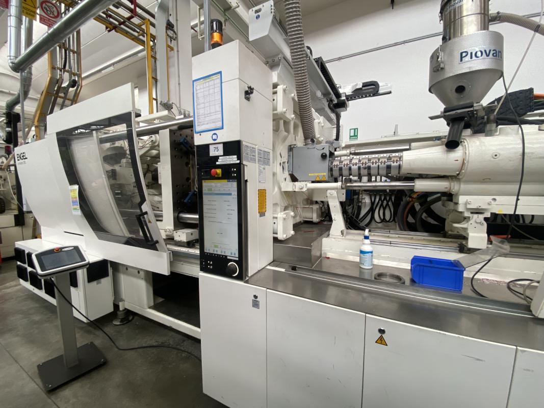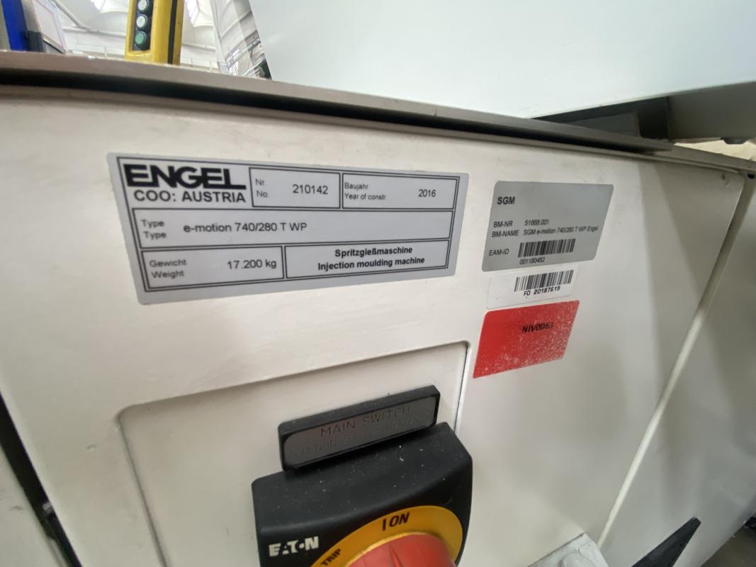 Fabrikat: ENGEL, Typ: eMotion 740/280TWP, Baujahr: 2016, Ser.-Nr. 210142, Maschine 4H, Steuerung, Fabr. Engel, Typ CC300, Schließkraft 280t, Säulenabstand 780 x 780 mm, Schnecken-Ø 50 mm, Schußgewicht max. 305 g, Entnahmeroboter, Fabr. TecnoMatic, Typ Medium CNC, Förderband, Fabr. Virginio, Typ HL8, Bj. 2020, Ser.-Nr. 33484/20, 4.000 x 800 mm, Fördergerät Piovan