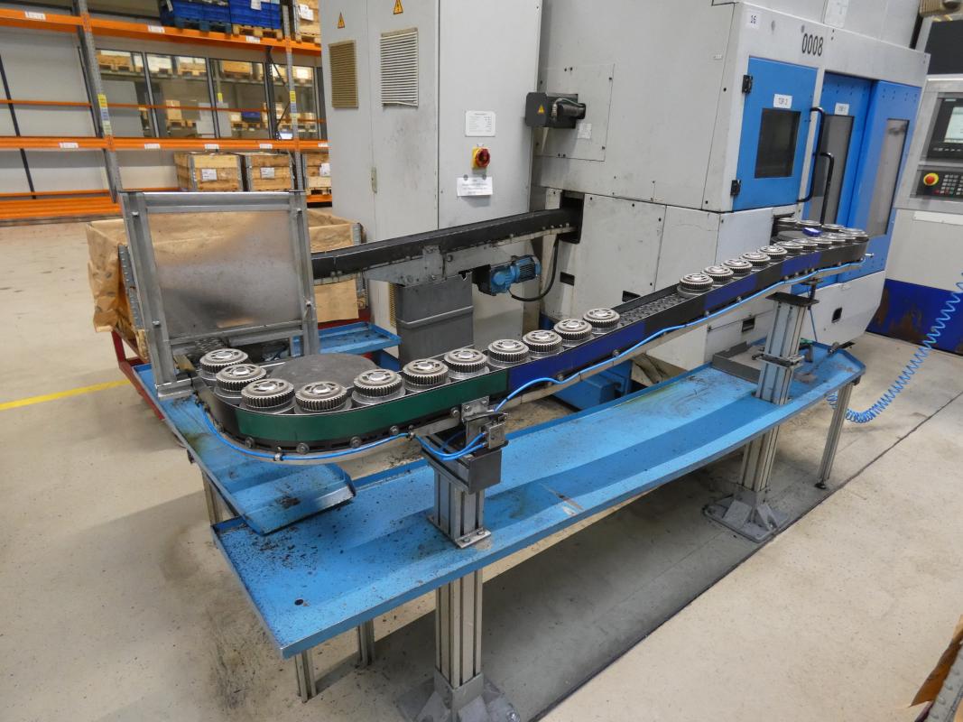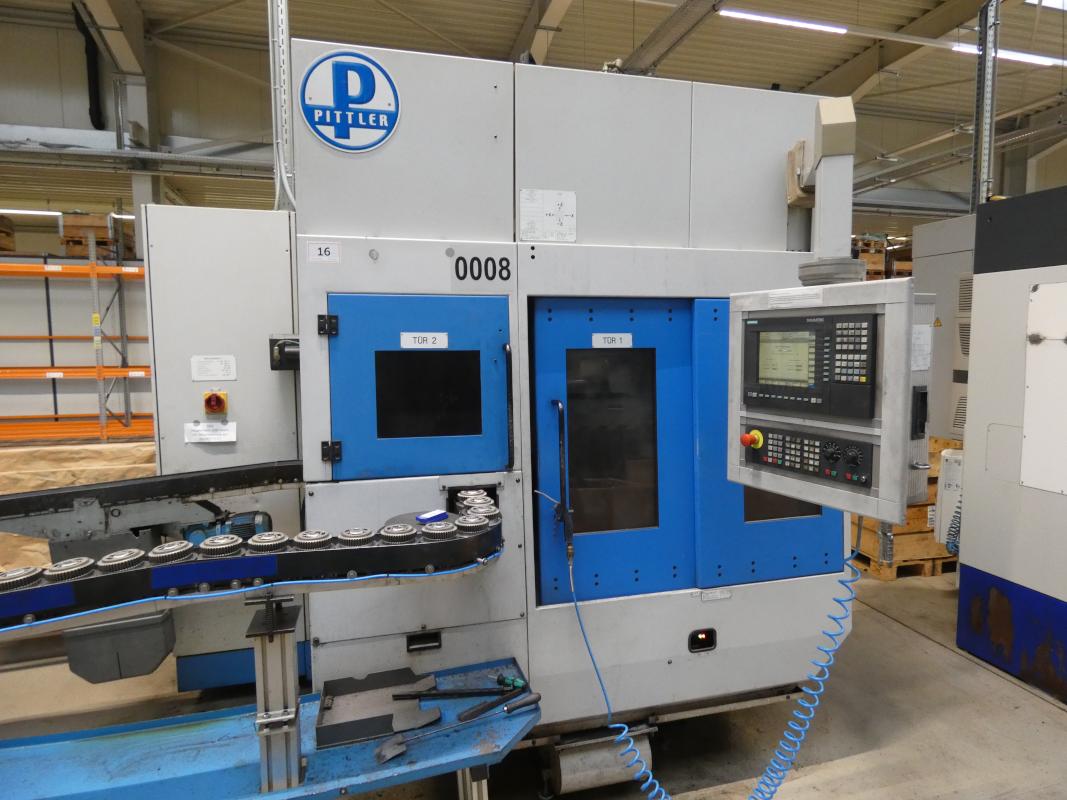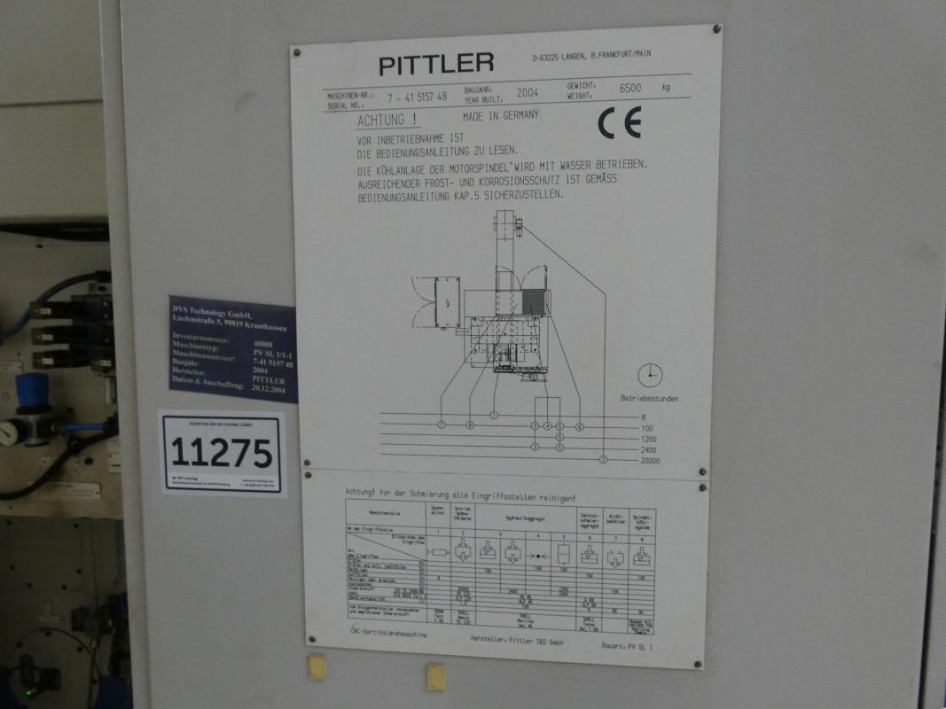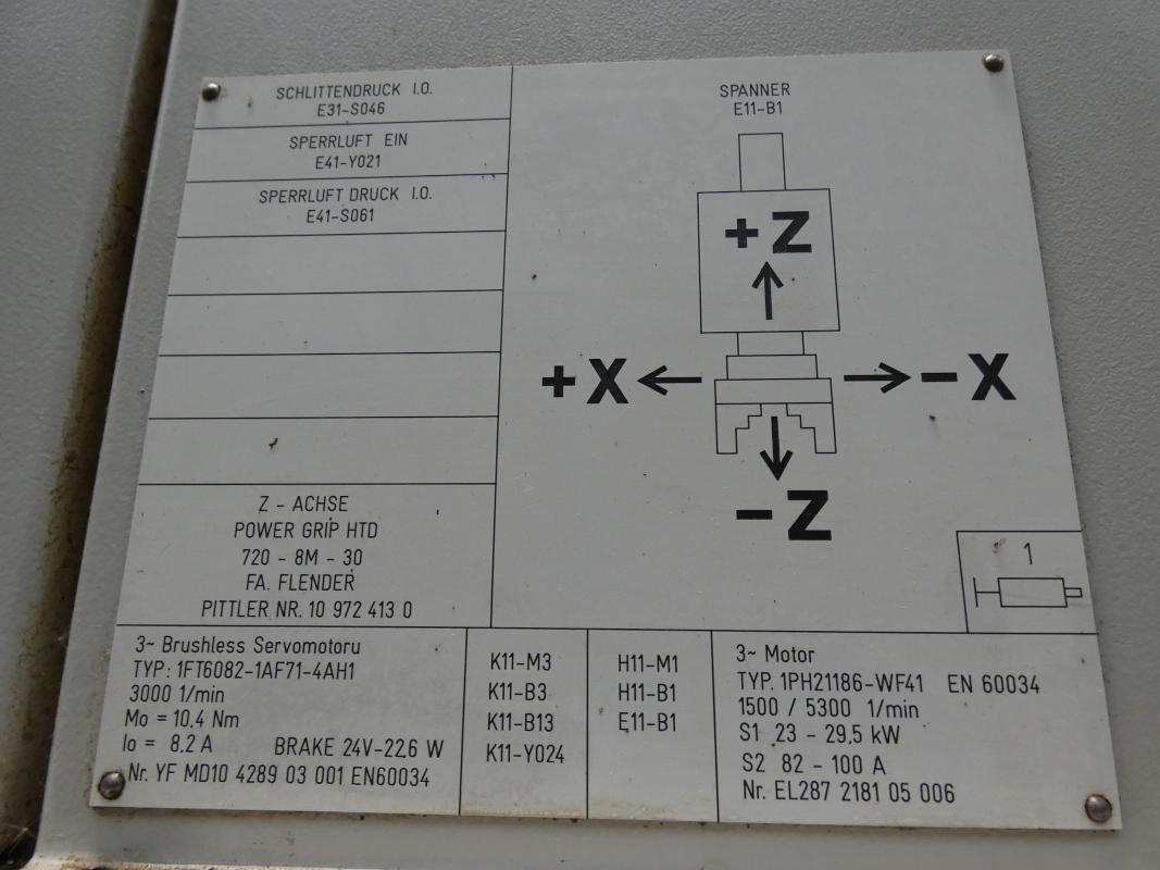 Fabrikat: PITTLER, Typ: PV SL 1, Baujahr: 2004, Ma.-Nr. 7-41515748, Steuerung Fabr. Siemens, Typ Sinumerik, Typ Sinumerik 840D, 2 Achsen X/Z, Werkstückdurchmesser max. 130mm, Drehzahl max. 7.000 U/min, Vorschübe max. Z 24 m/min, X 40 m/min, Werkstückhöhe max. 50mm, Dreibackenfutter, 8-fach Werkzeugrevolver, Werkzeugaufnahme VDI 40, Paletten-Umlaufband L ca. 5.000 mm, Be- und Entladesystemstem Späneförderer, Fabr. Knoll, Typ 225S-2, Bj. 1999, Rückkühlaggregat, Fabr. Rittal, Typ SK3334.600 / RITA10222SIC, Defekte: Spindelschaden