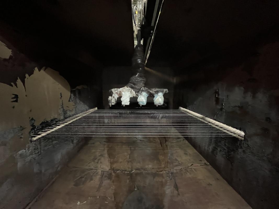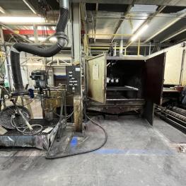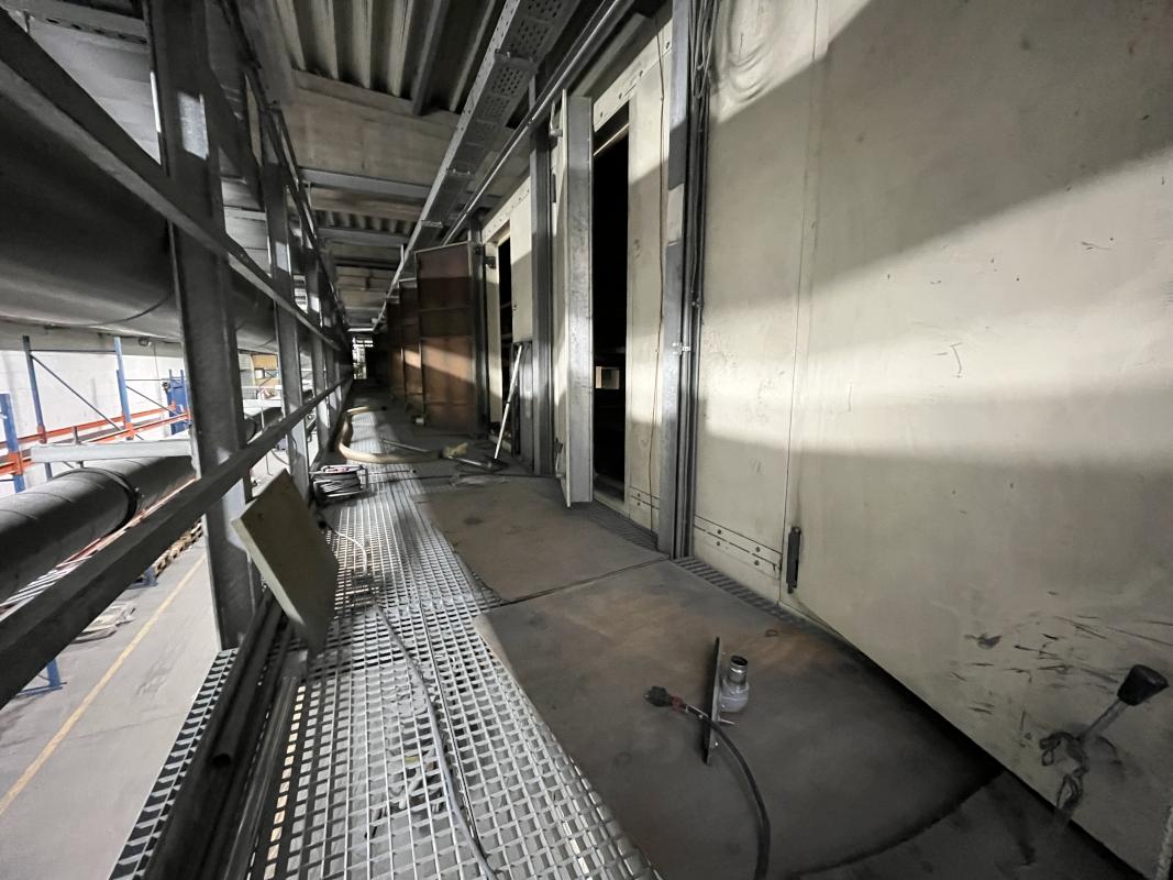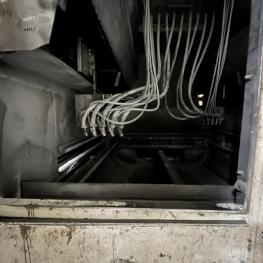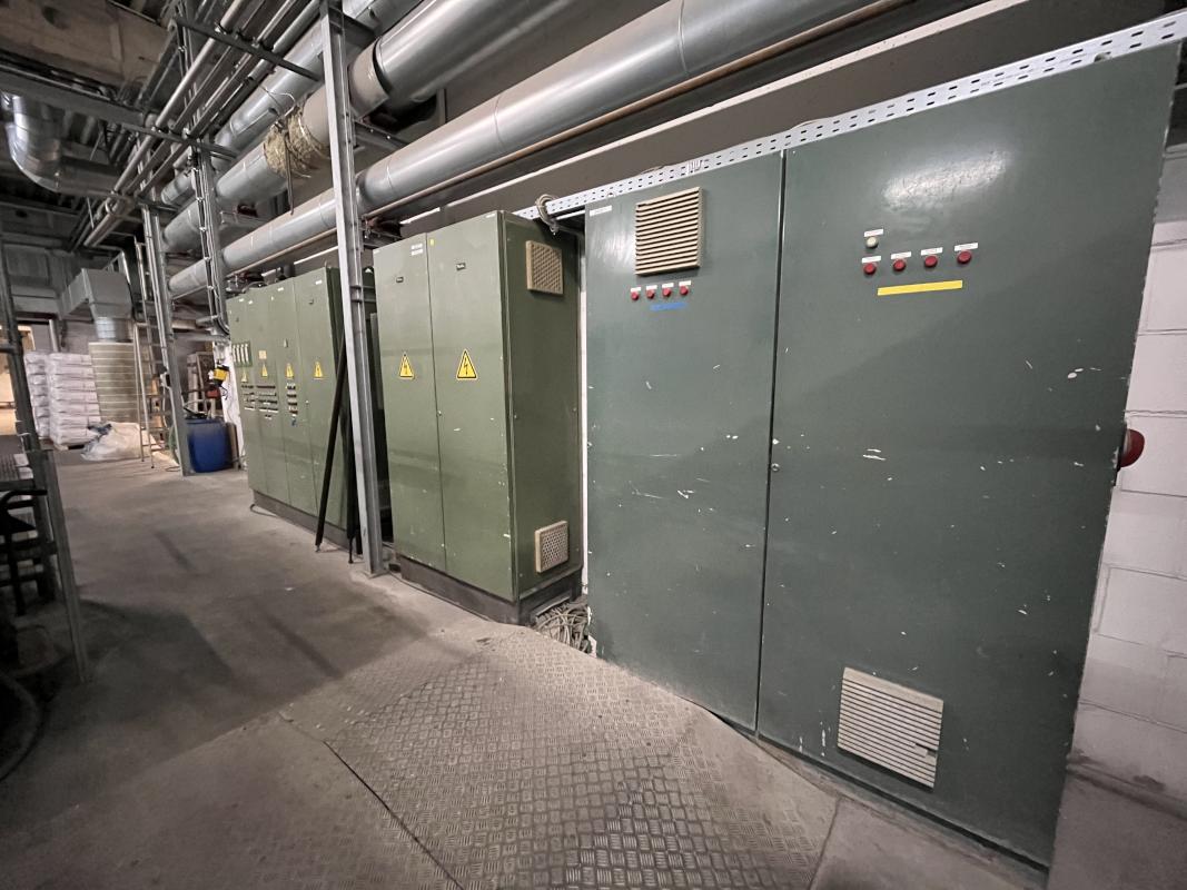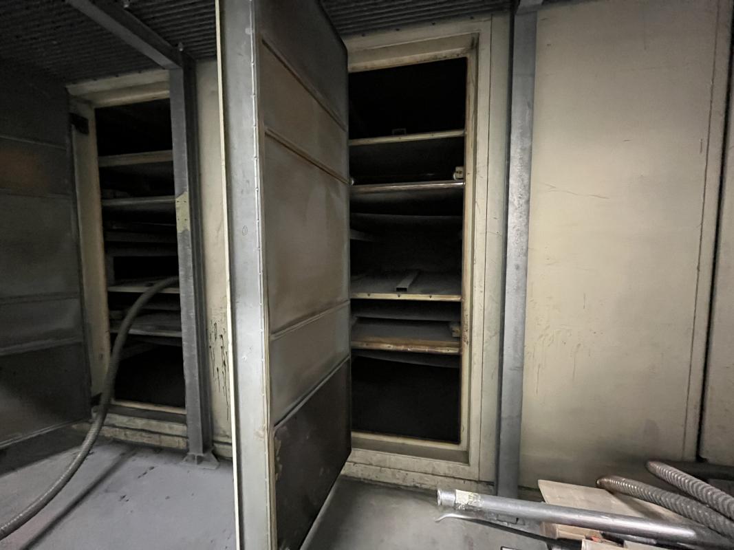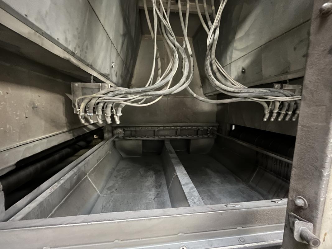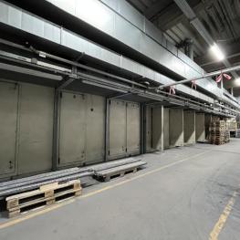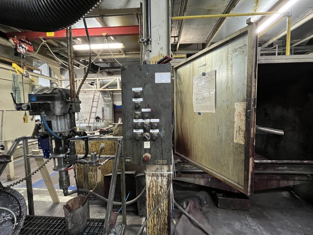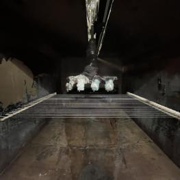 Fabrikat: SCHOTT & MEISSNER, Baujahr: 1997, best. aus: Steigdockentwickler, Bj. 1997, Ser.-Nr. 291, Druckwerk, Bj. 1997, Aufwickeleinheit, Vliesabwickelgestell, Sprühkabine 2, automatische Sprüheinheit, 4 Sprühdüsen, Airless-Spritzanlage, Fabr. Wagner, Typ Icebreaker, Übergabestrecke, Sprüh-/Flatschstation, Streukabine 1, Überströmtrockenofen, 4 Etagen, Bj. 1997, Sattdampf 9 bar, Ex-Ausführung, Gesamtlänge ca. 38 m, Streukabine 2, Vlies-Sprühanlage 2, Umlenkeinheit, Airless-Spritzanlage, 4 Sprühdüsen, Stempelmaschine, Bj. 1997,