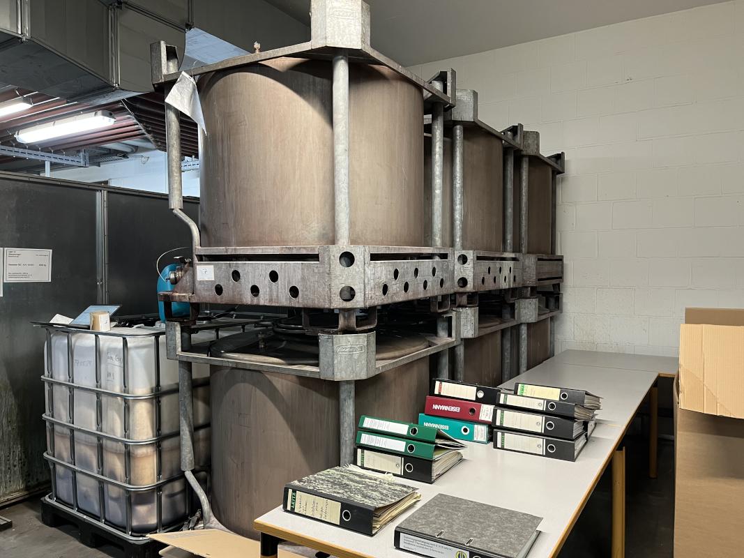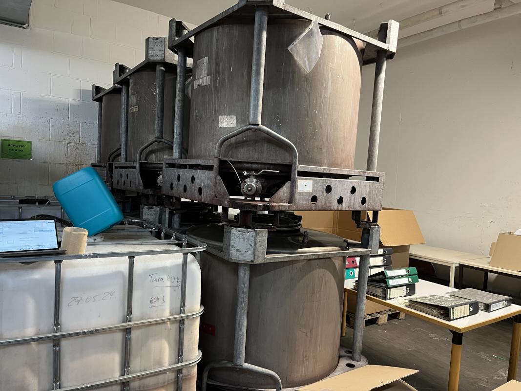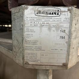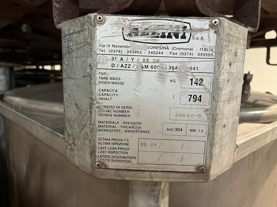 Fabrikat: AZZINI, Volumen 794 l, Gewicht 142 kg, Klappdeckel, Ablassventil, Stapleraufnahmen, stapelbar