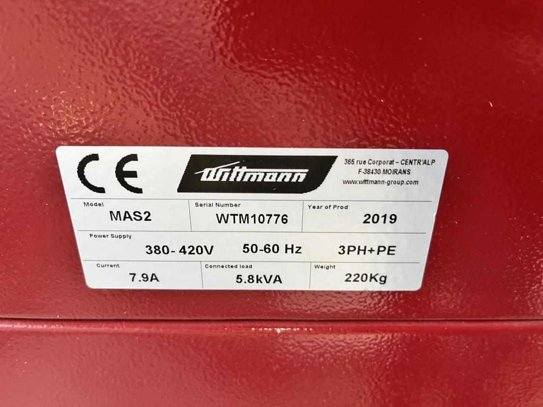 Fabrikat: WITTMANN, Typ: MAS 2, Baujahr: 2019, Serien-Nr.: WTM10776, Ser.-Nr. WTM10776, Mahlkammer 247 x 255 mm, 3 Klingen, Leistung 4 kW, Rotor-Ø 180 mm, Steuerschrank