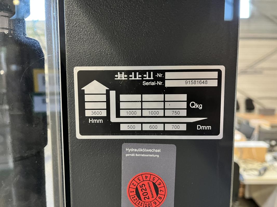 Fabrikat: JUNGHEINRICH, Typ: EKS 110, Baujahr: 2014, Ser.-Nr. 91581648, Tragfähigkeit 1.000 kg, Hubhöhe max 3.600 mm, inkl. Ladegerät, Betr.-Std.: ca. 6.770h