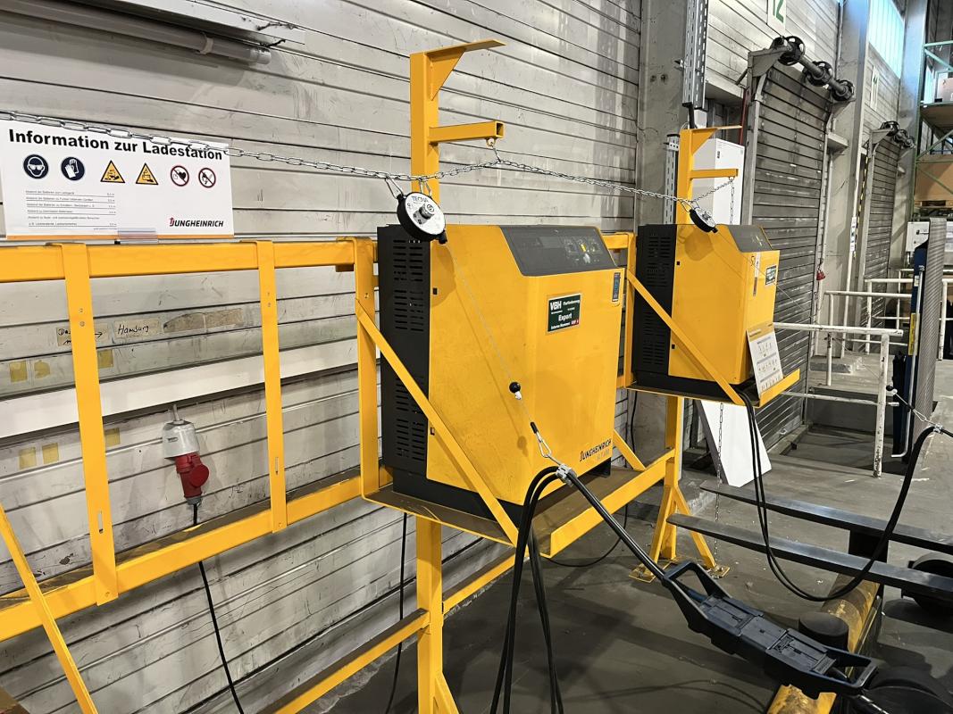 Fabrikat: JUNGHEINRICH, Baujahr: 2023, 3 Sationen, Metallgestell, Rammschutz, Federzug, ohne Ladegerät