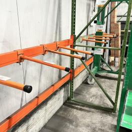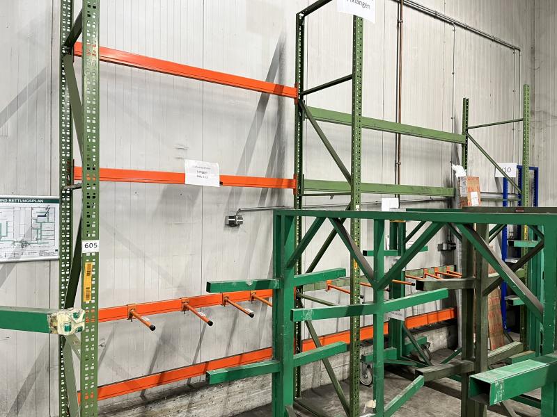 best. aus: 2 Elemente, 1x B/T/H 2.700 x 1800 x 4.000 mm, grün, 4 Traversen, 1x B/T/H 1.800 x 800 x 4.000 mm, grün / orange, 4 Traversen, ohne Inhalt