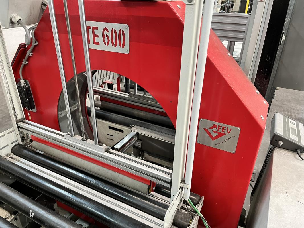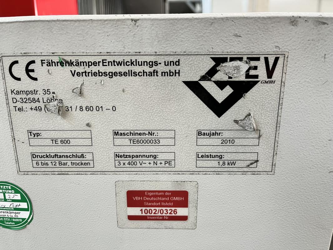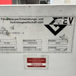 Fabrikat: FEV, Typ: TE600, Baujahr: 2010, Ser.-Nr. TE6000033, SPS-Steuerung, Operator Panel, Fabr. Omron, Folienvorhangsystem, Wiegestation, Fabr. Soehnle, Schutzzaunanlage Fabr. Brühl