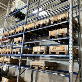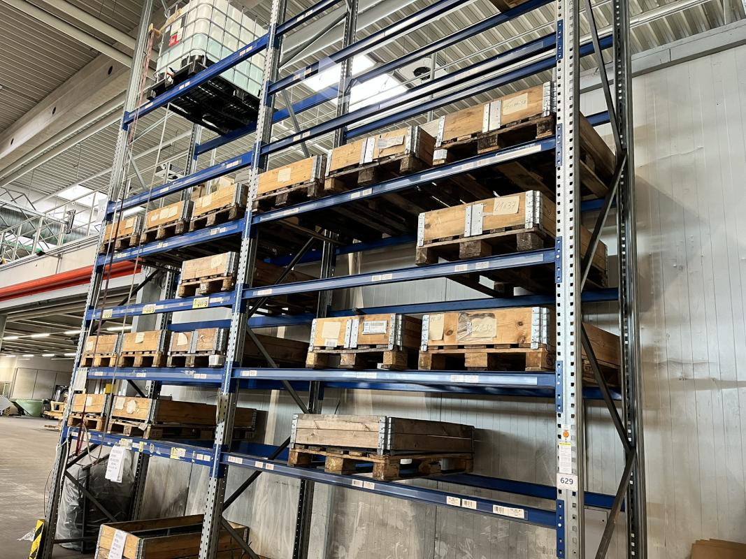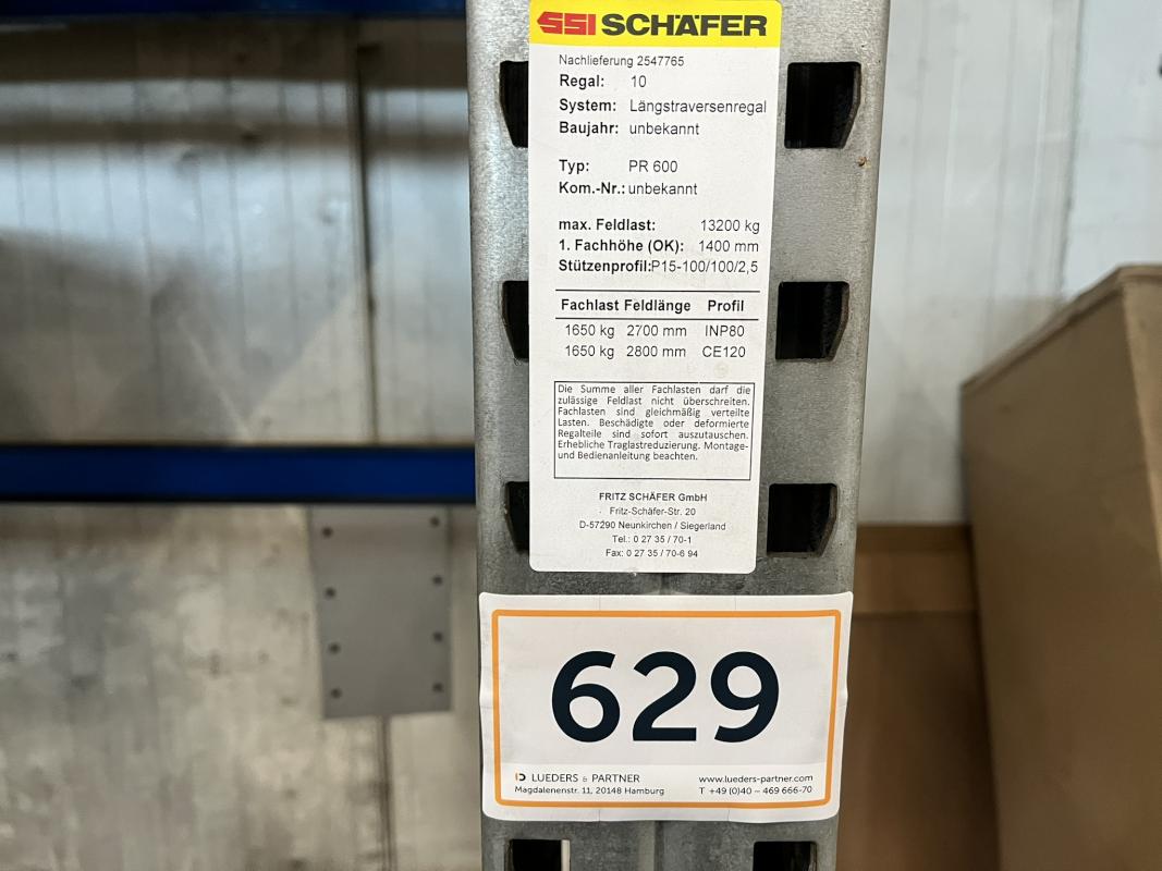 Fabrikat: SSI SCHÄFER, Typ: PR600, best. aus: 2 Elemente, B/T/H 2.700 / 2.800 x 1.100 x 6.000 mm, 6 Ebenen, Fachlast 1.650 kg, Feldlast 13.200 kg, blau/silber, ohne Inhalt