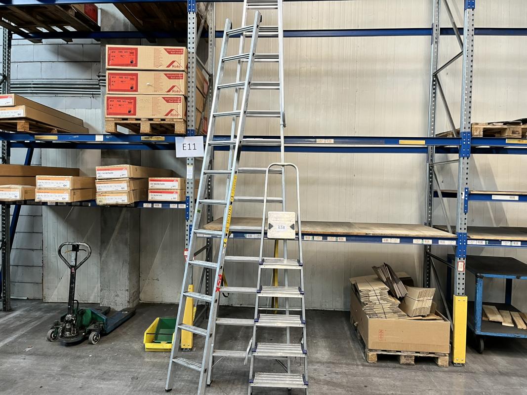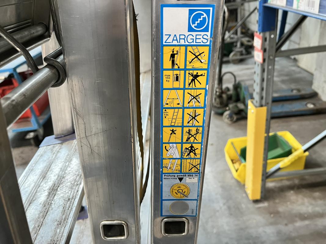 best. aus: 1x Anstellleiter, Fabr. Zarges, 10-stufig, 1x Aluklappleiter, Fabr. Leifheit, 6-stufig, Alu-Bockleiter, Fabr. Zarges, 13-stufig