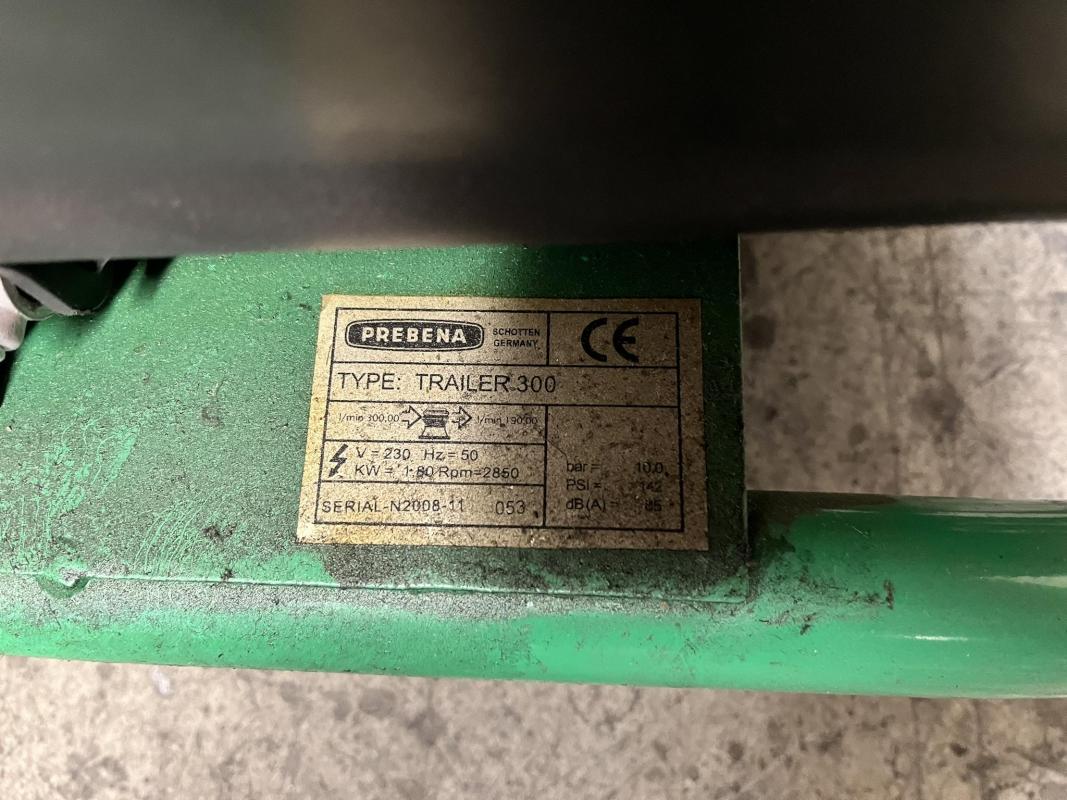 Fabrikat: PREBENA, Typ: trailer 300, Ser.-Nr. 2008-11, Druck max. 10 bar, Leistung 1,8 kW, Volumenstrom 190 l/min, 1 Posten Druckluftschläuche
