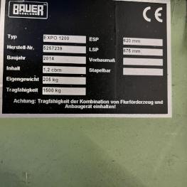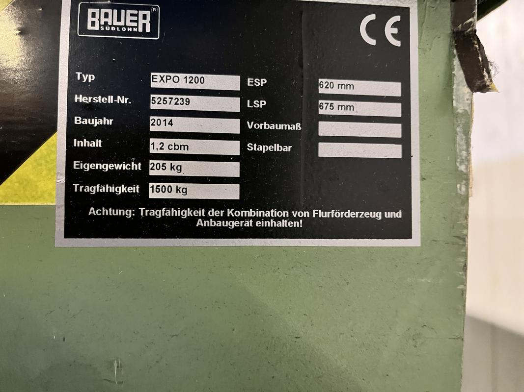 Fabrikat: BAUER, Typ: EXPO 1200, Baujahr: 2014, Ser.-Nr. 5257239, Volumen 1,2 m³, Stapleraufnahme, Eigengewicht 205 kg, Tragfähigkeit 1.500 kg