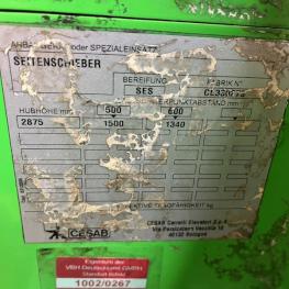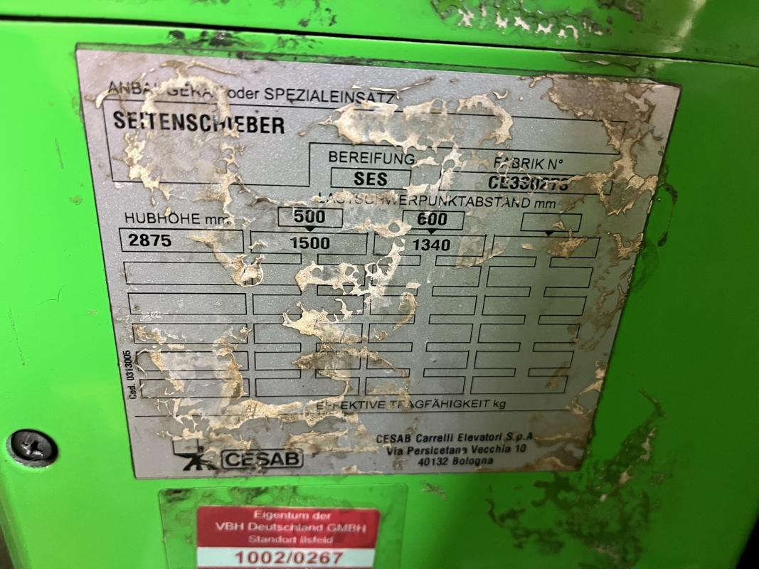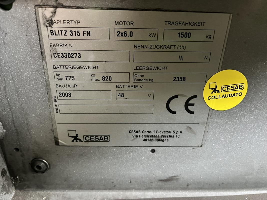 Fabrikat: CESAB, Typ: Blitz 315FN, Baujahr: 2008, Ser.-Nr. CE330273, Tragfähigkeit max. 1.500 kg, Duplex-Mast, Hubhöhe ca. 2.875 mm, hydraulischer Seitenschieber, Ladegerät