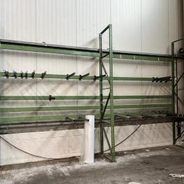Fabrikat: U.A. VOGELSANG, 6 Elemente, B/T/H 2.700 x 1.000 x 4.000 mm, Posten Trenn-/Sortierbügel, Posten Traversen, ca. 40 Stk., B. 2.700 mm, 4 Ständer, H ca. 4.000 mm, auf Palette lagernd, ohne Inhalt