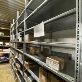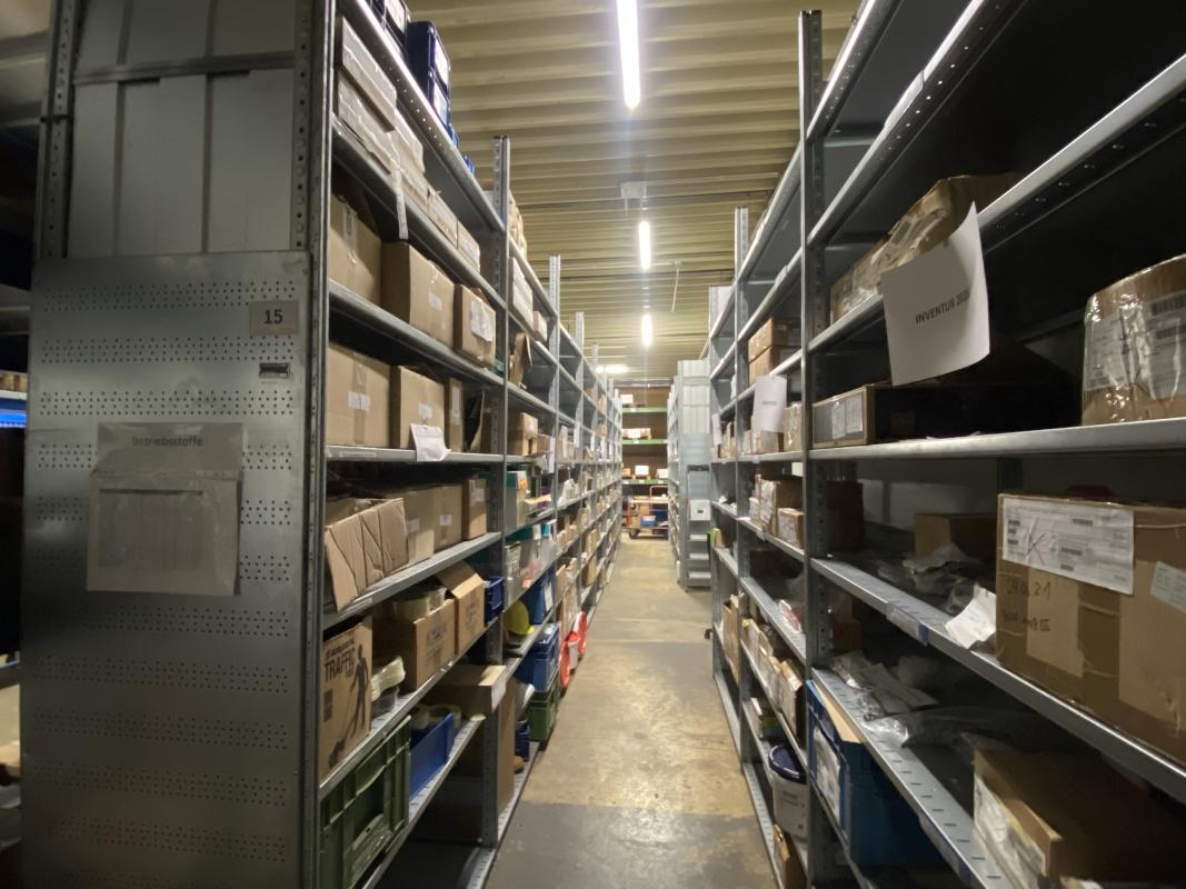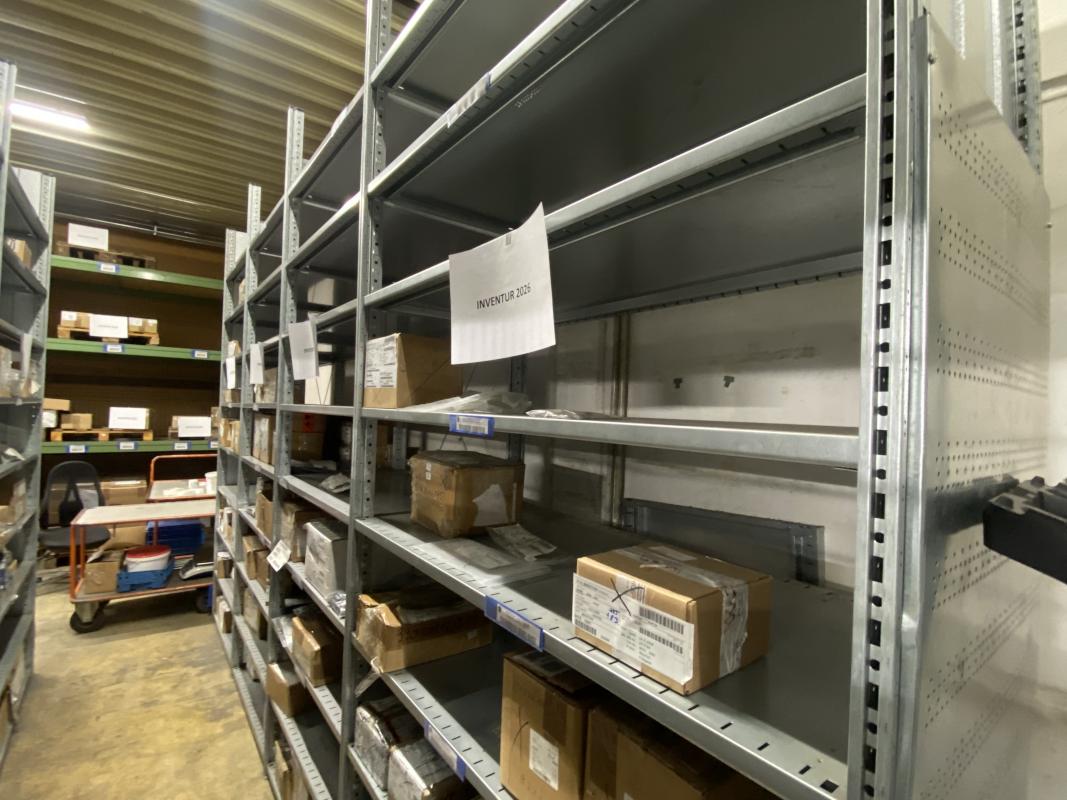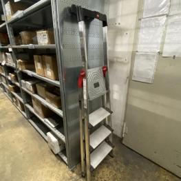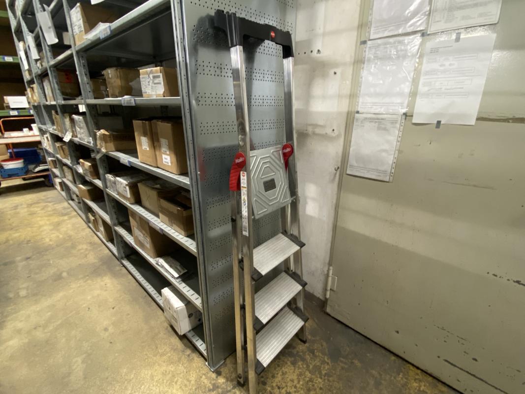 15 Elemente, 1.250 x 600 x 3.000 mm, max. 9 Ebenen, Metalleinlegeböden, 1x Bockleiter Fabr. Hailo, 4-stufig, ohne Inhalt, Freigabe nach Absprache