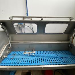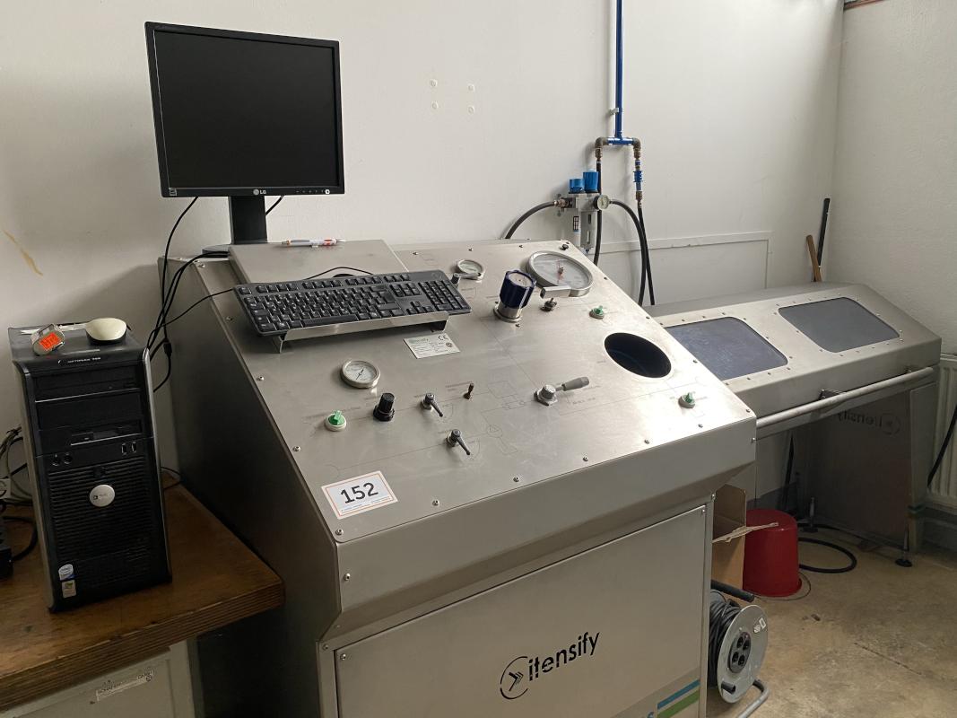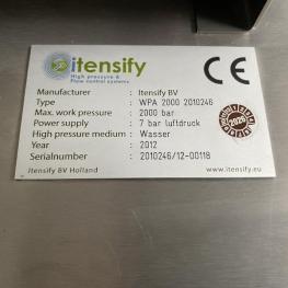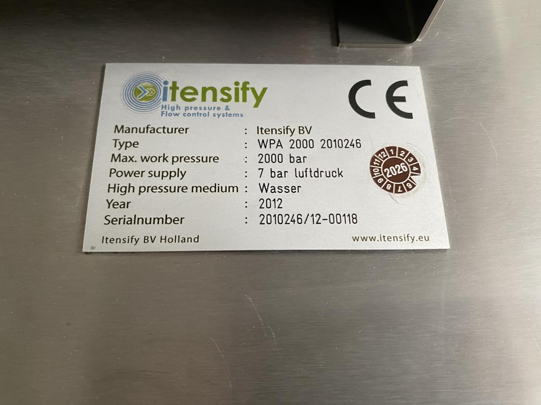 Fabrikat: ITENSIFY, Typ: WPA 2000, Baujahr: 2012, Ser.-Nr. 2010246/12-00118, Prüfmedium Wasser, Arbeitsdruck max. 2000 bar, Edelstahl, Druck einstellbar, Testkammer B/T 1.500 x 500mm, 1x PC, Fabr. Dell, TFT-Monitor, Maus, Tastatur, Bedienstand, Werkbank, 4 Auszüge, 1x Schraubstock, Backenbreite 125mm