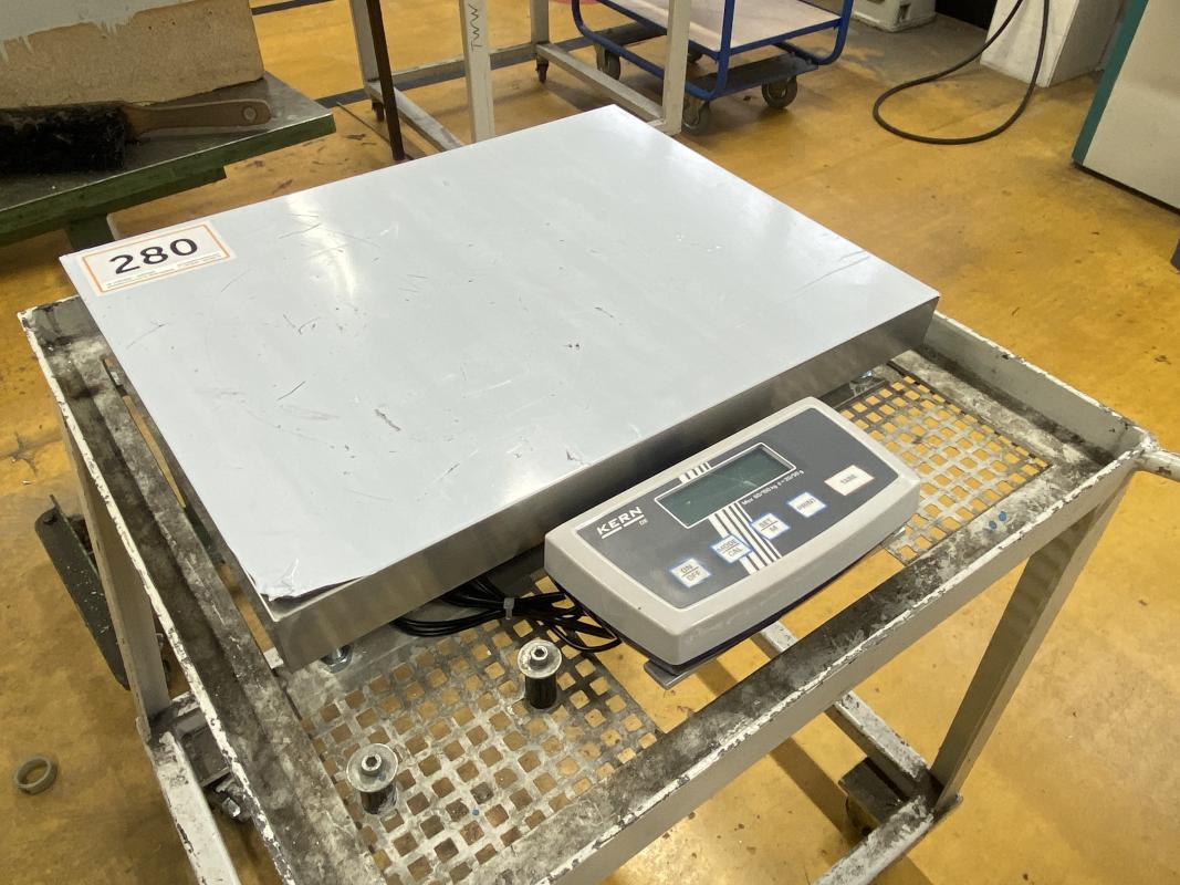 Fabrikat: KERN, Typ: DE 150K20DL, Plattform 520 x 400mm, Wägebereich max. 60/150kg, Rollwagen