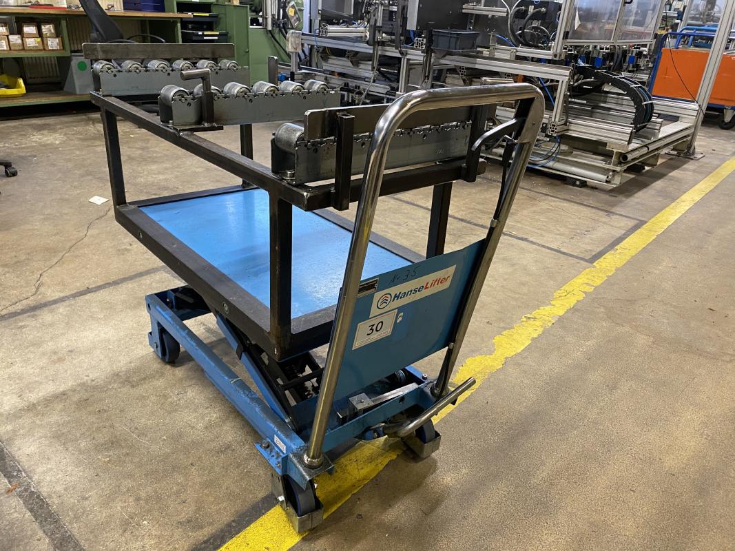 Fabrikat: HANSELIFTER, Typ: SPS150, Baujahr: 2006, Tragfähigkeit ca. 150 kg, Tischgröße ca. 740 x 450 mm, Rollaufsatz geschraubt