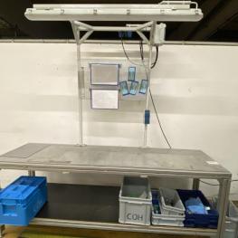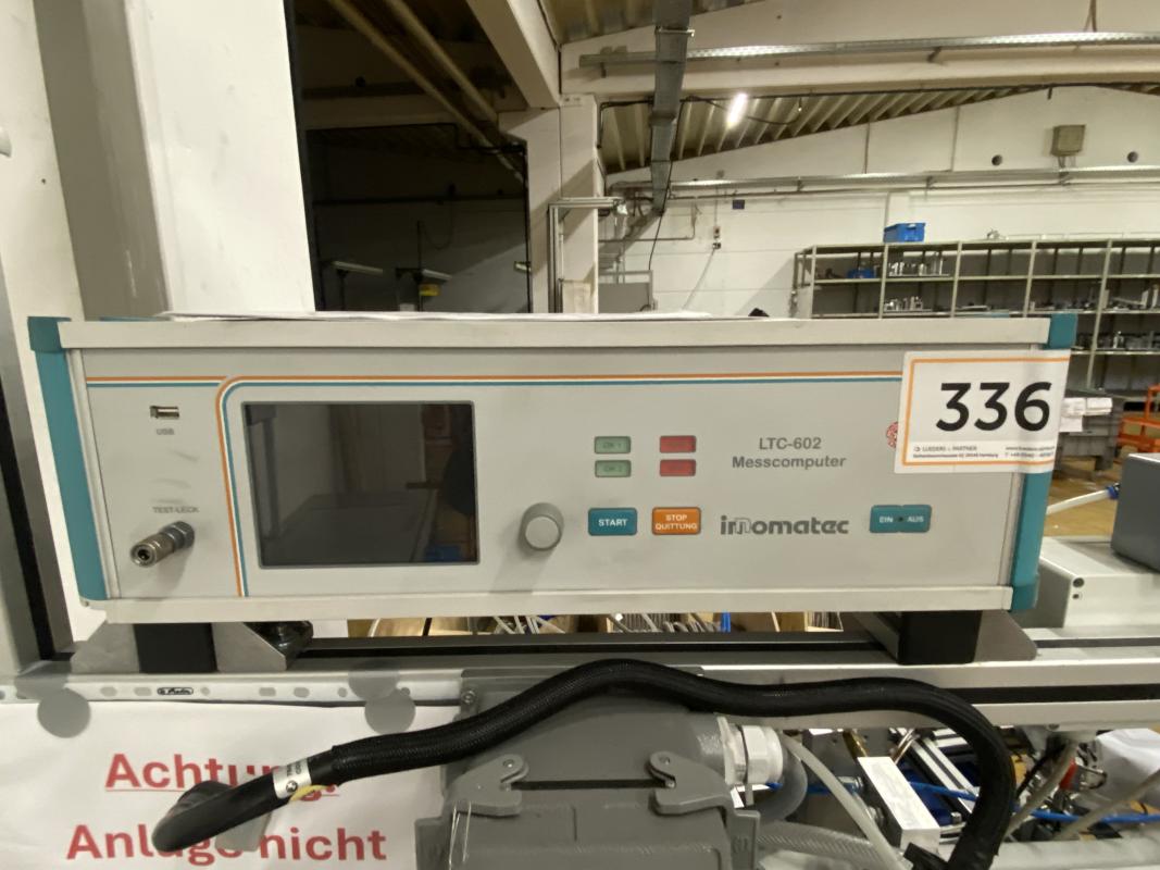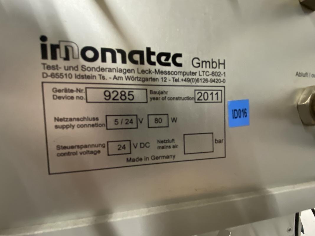 Fabrikat: INNOMATEC, Typ: LTC-602, Baujahr: 2011, Prüfdruckbereich frei programmierbar, 2 Prüfkanäle, elektr. Präzisionsdruckregler, 5,5" TFT-Display, 3 Montagetische aus Alu-Systemprofilen, Oberlicht, Etikettendrucker, Fabr. CAB, Typ Squix