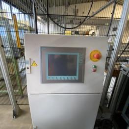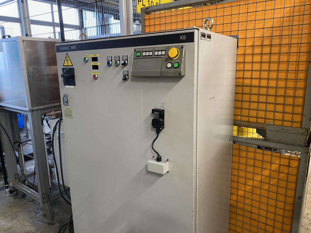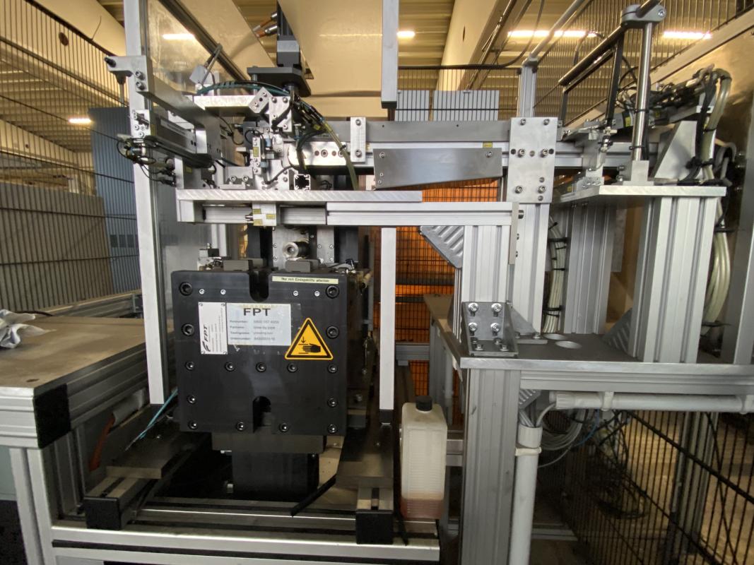 Fabrikat: FPT, Baujahr: 1994, 6 Umformstationen; Zuführstation, 2x Roboter, Fabr. Motoman / FGANUC, Robotersteuerung Yasnac MRC, 2x Teach In-Terminal Inspektionseinheit, Fabr. KEYENCE, Anlagensteuerung mit Operator Panel, Fabr. Siemens, Typ SIMATIC Panel touch, Schutzzaunanlage, Werkbank, Prüfplatz mit Oberlicht, Ersatzzylinder