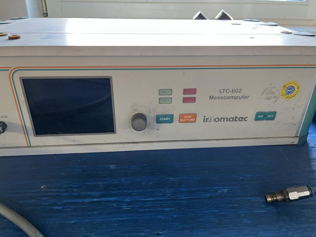 Fabrikat: INNOMATEC, Typ: LTC 602, Baujahr: 2014, Ser.-Nr. 9922, Prüfdruckbereich frei programmierbar, 2 Prüfkanäle, elektr. Präzisionsdruckregler, 5,5" TFT-Display, Montagetisch